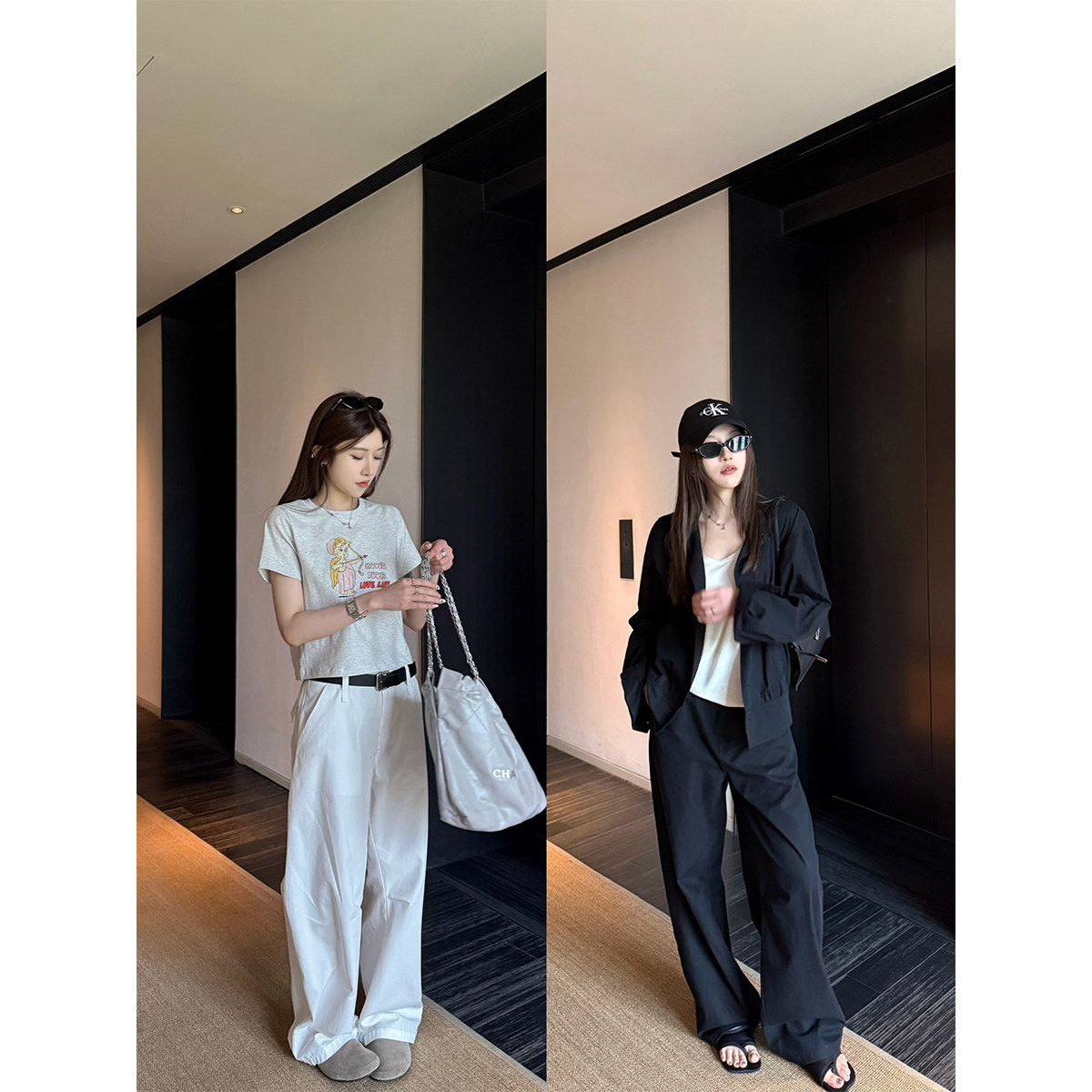 淘猫猫家加长女裤秋冬美式黑色工装牛仔裤女高腰阔腿裤设计感直筒裤
