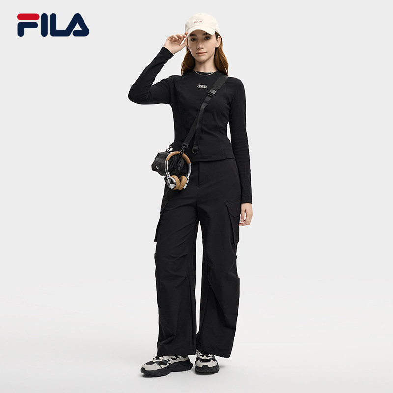 天猫杨幂同款FILA 斐乐官方女士梭织长裤2025冬季新款休闲舒适工装裤
