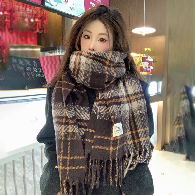 2025年秋冬季新款格纹流苏围巾女加厚保暖仿羊绒韩版时尚百搭围脖