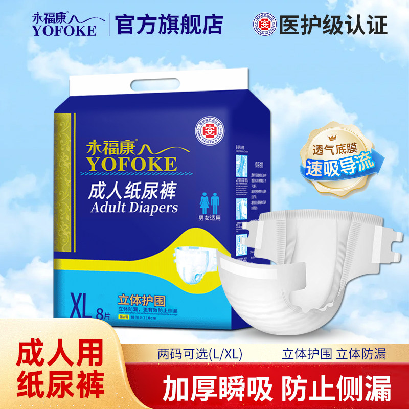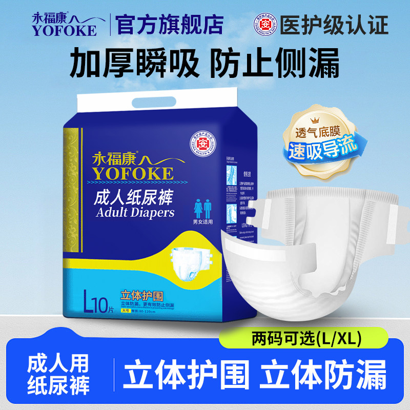 天猫永福康成人纸尿裤男女老年人尿不湿护理垫L号大码粘贴式加厚尿裤