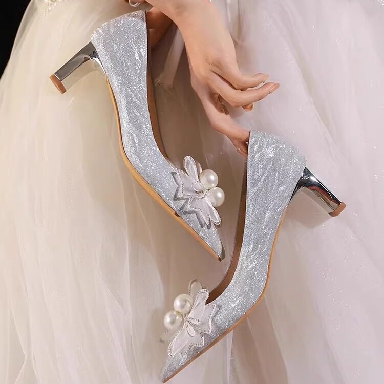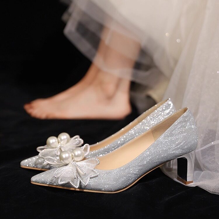 法式高跟鞋气质配裙子新娘鞋单鞋女水钻礼服香槟色绝美宴会伴娘鞋