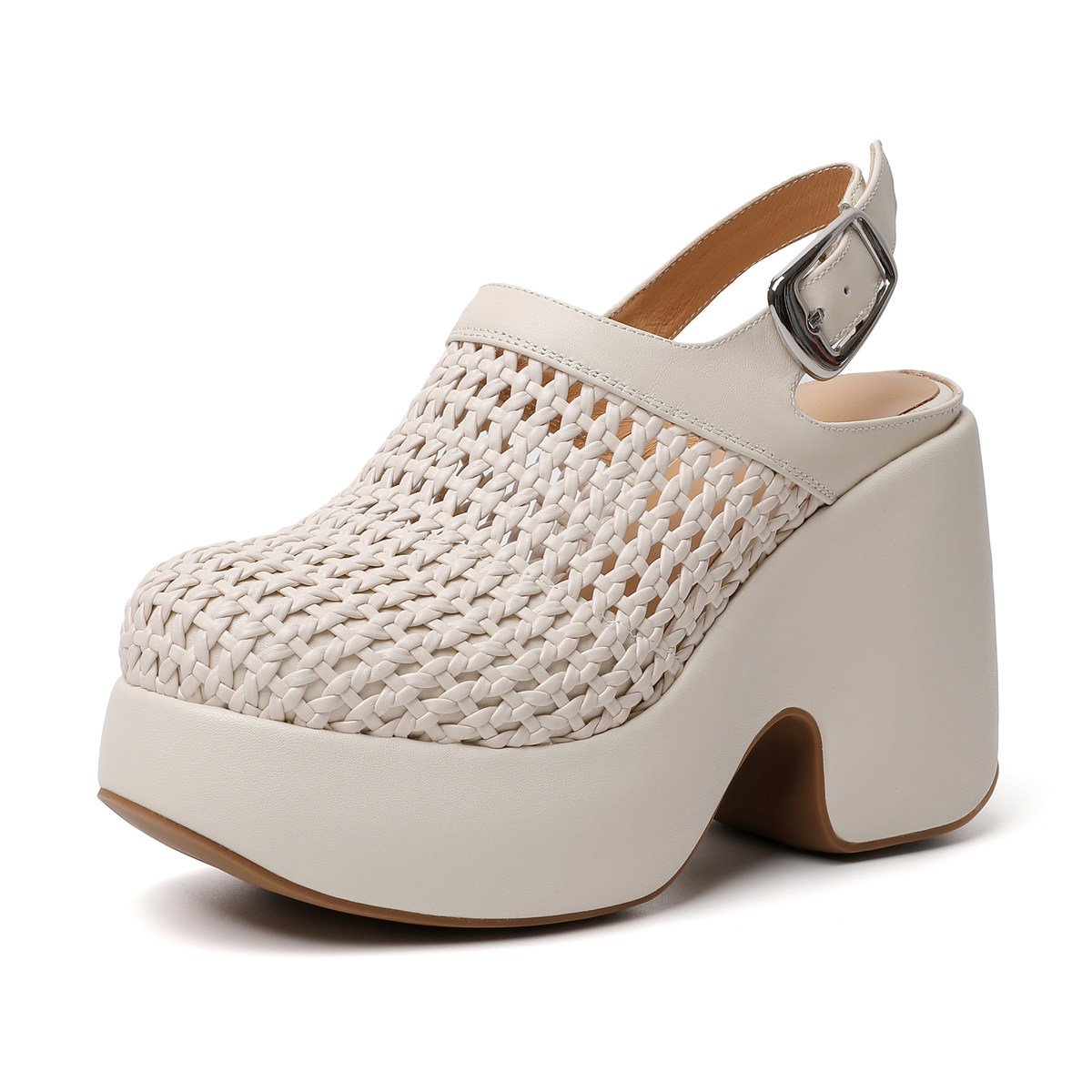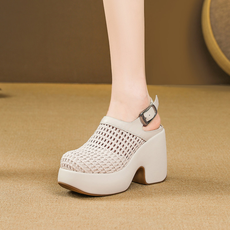 淘宝法式厚底罗马凉鞋女春夏新款粗跟高跟真皮包头英伦编织女鞋不累脚