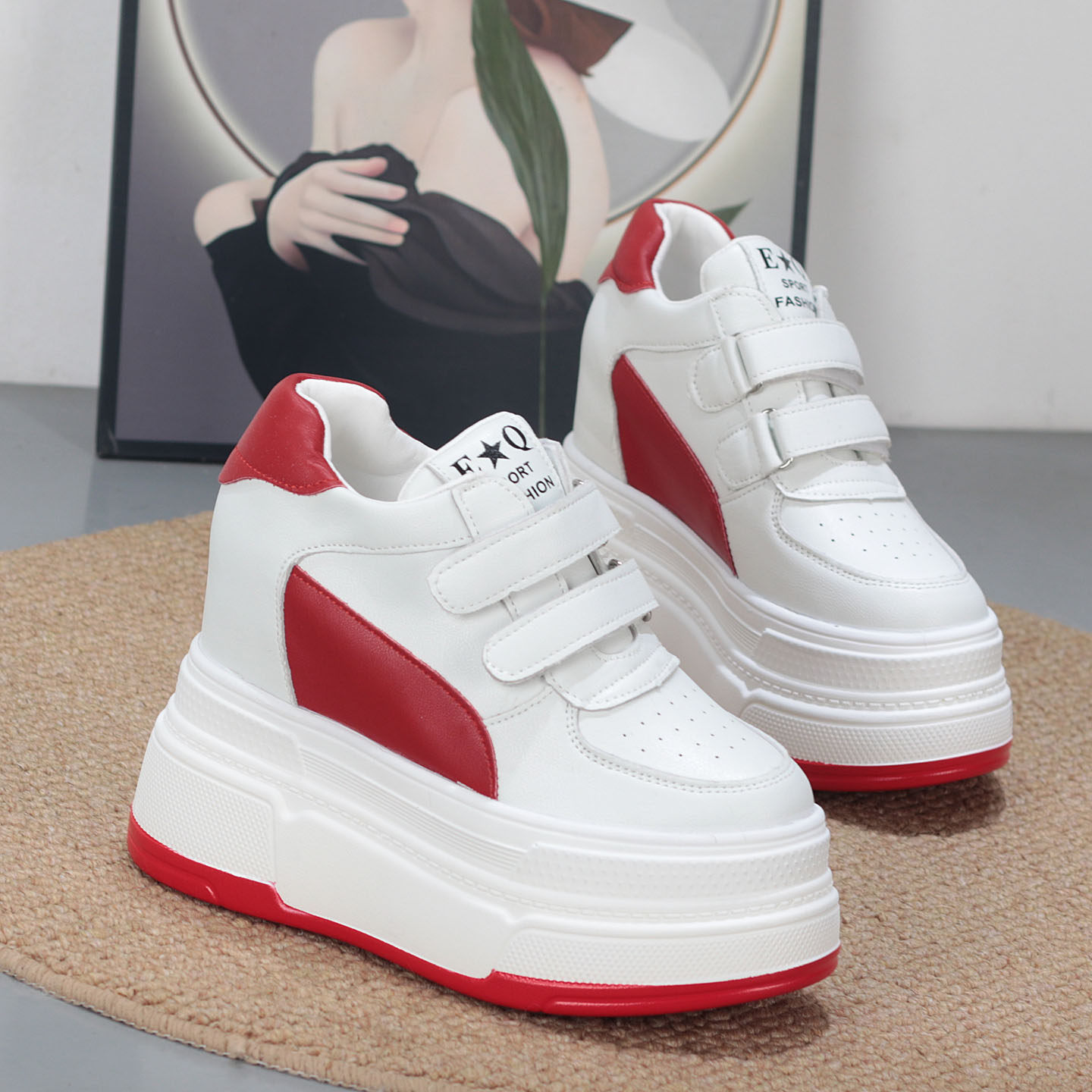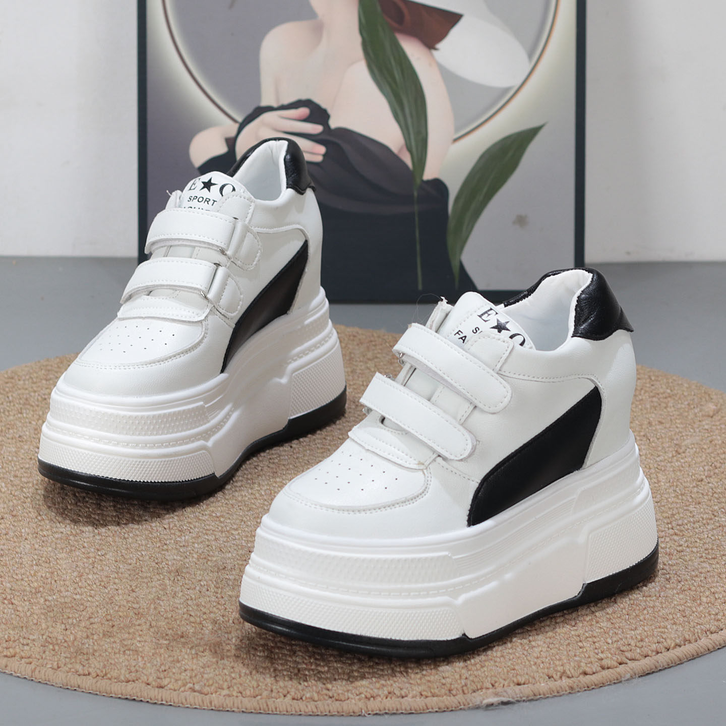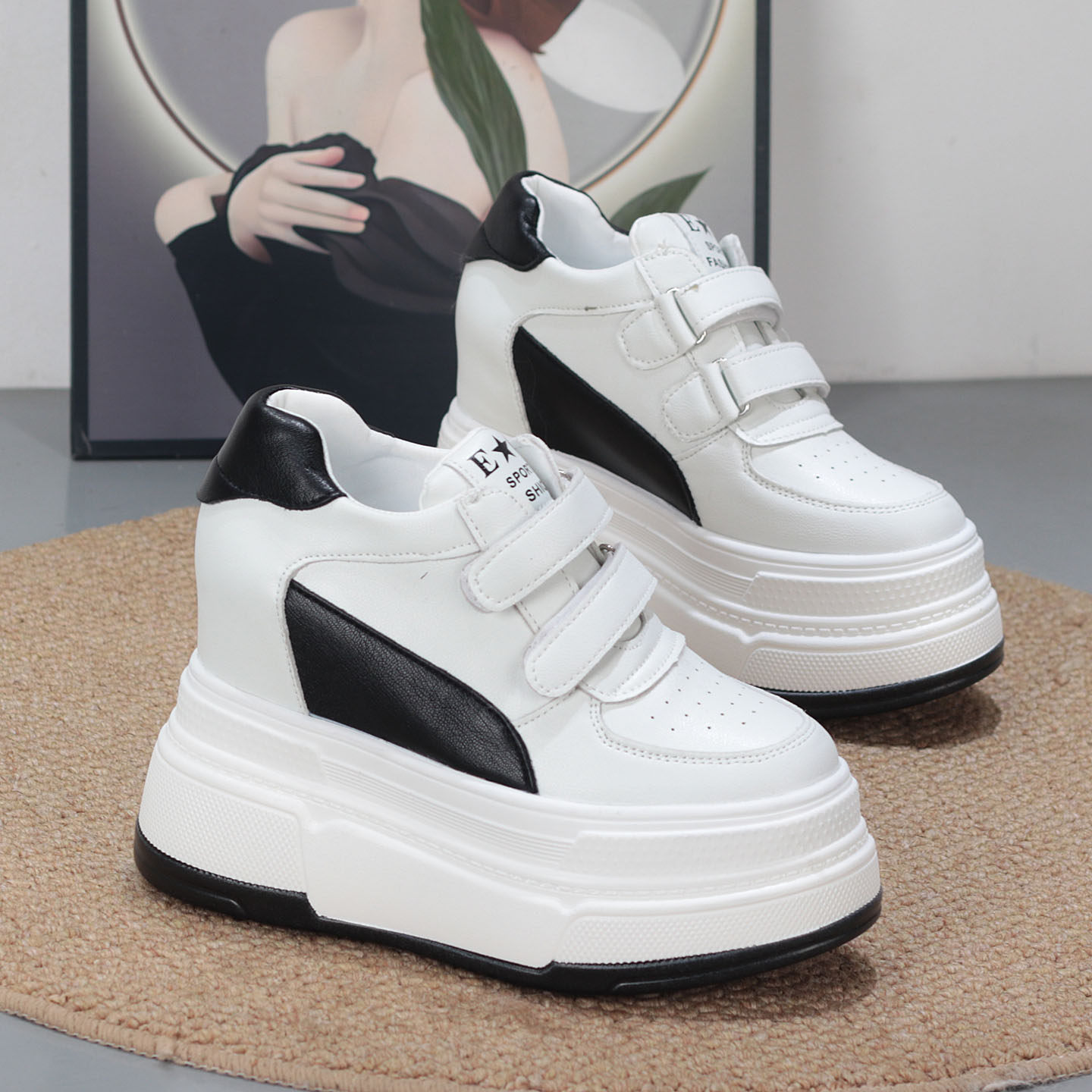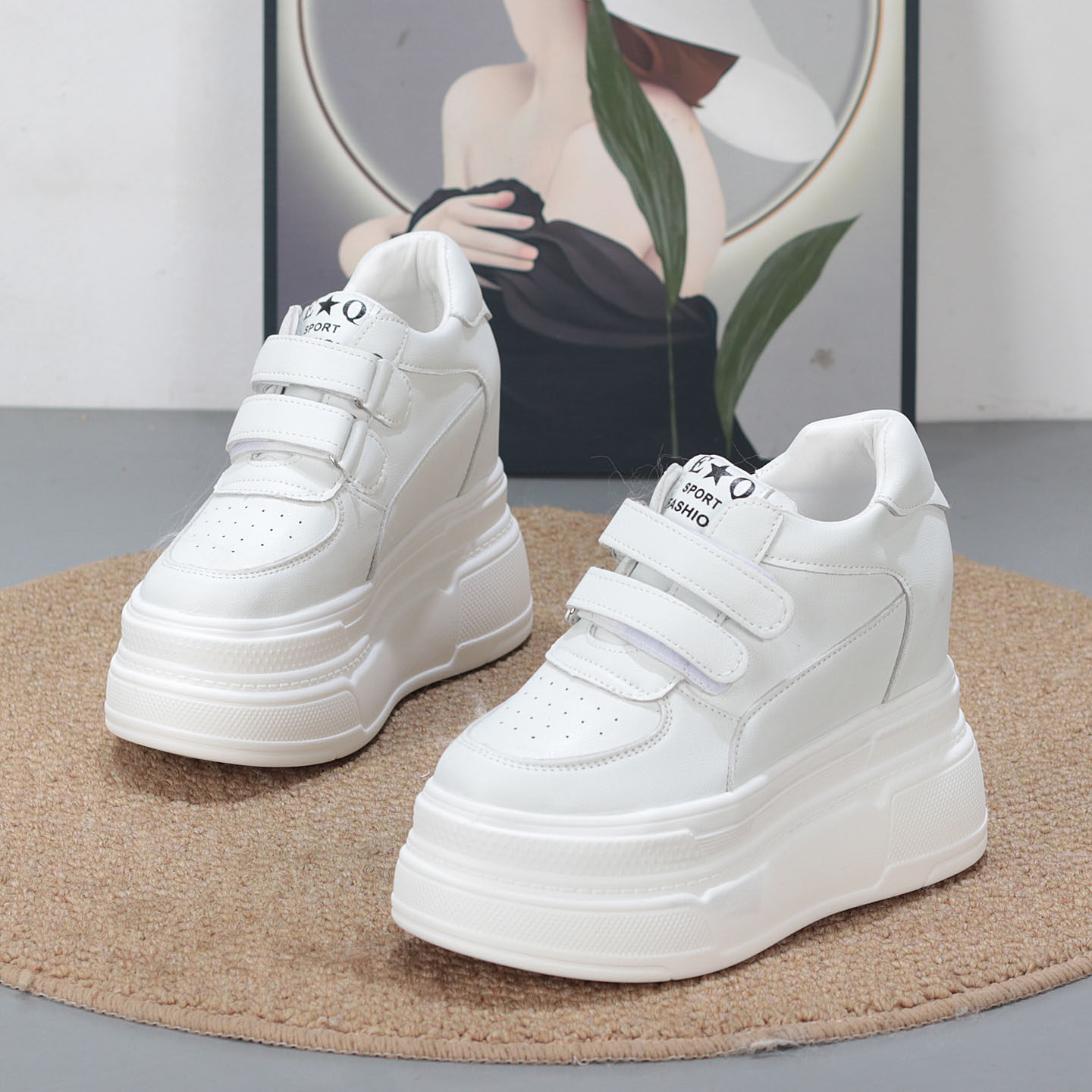淘宝2025秋季厚底松糕魔术贴小白鞋超高跟内增高12CM小个子10CM女单鞋