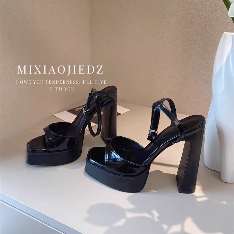 淘宝2025新款性感超高跟鞋女粗跟防水台一字带凉鞋气质模特走秀13cm