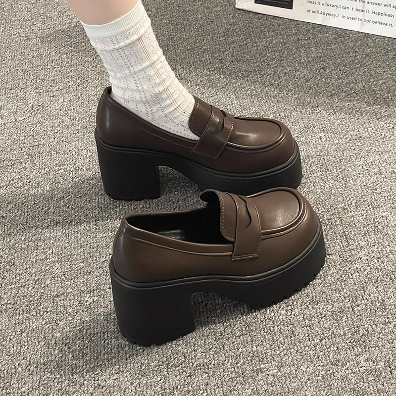 2026春季新款英伦风小个子高跟乐福鞋女通勤简约粗跟厚底时尚单鞋