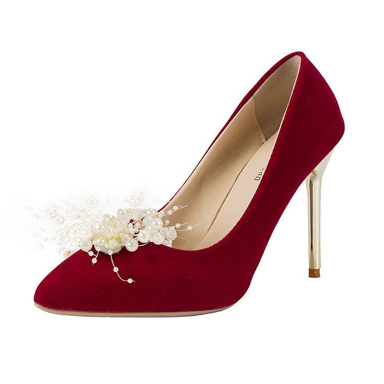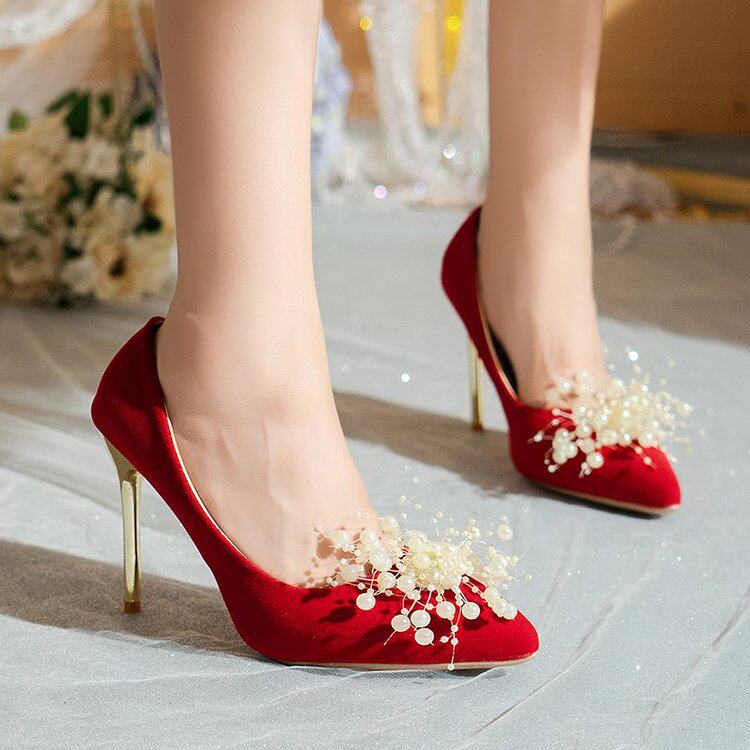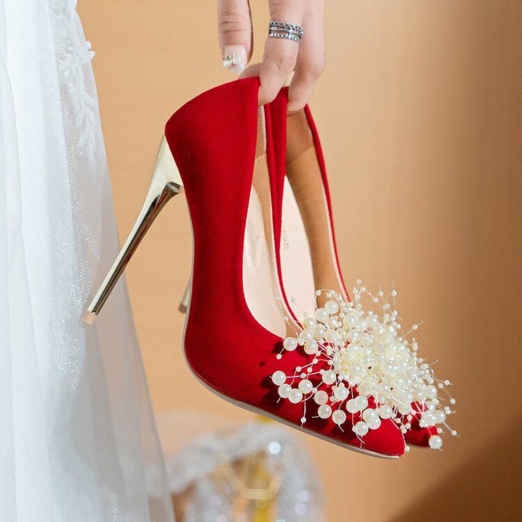 淘宝35-45码 12cm大码女鞋43时尚花朵高跟鞋42性感细跟秀禾鞋结婚鞋44