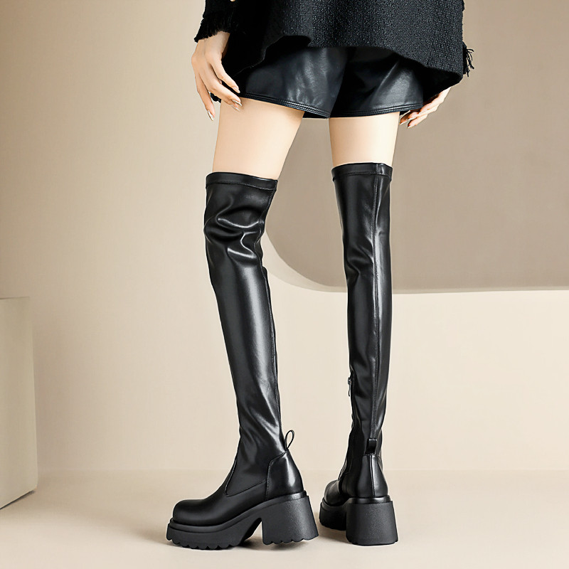 2023年新款过膝长筒靴,专为时尚女性打造,兼具显瘦与舒适。采用弹力瘦瘦靴设计,贴合腿部线条,轻松勾勒修长美腿,视觉上更显高挑。粗跟搭配防水台厚底,稳固耐穿,行走自如,同时提升整体气场。优质面料柔软透气,内里细腻亲肤,长时间穿着也不累脚。经典骑士靴风格,百搭各种秋冬造型,无论是搭配短裙、大衣还是裤装,都能展现酷飒魅力。防滑耐磨鞋底,适应多种路况,实用与时尚并存。这款长靴不仅是秋冬衣橱的必备单品,更是打造大长腿的显瘦利器,轻松穿出自信与优雅。