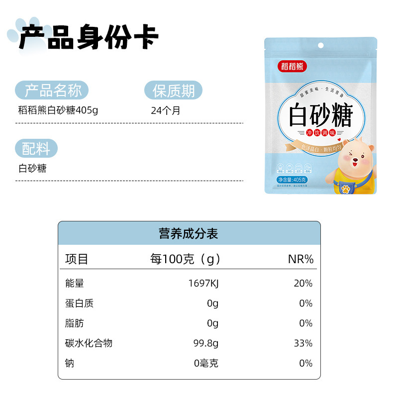 天猫稻稻熊白砂糖家用白糖细砂糖蛋糕烘焙专用食糖冲饮调味浆糖水