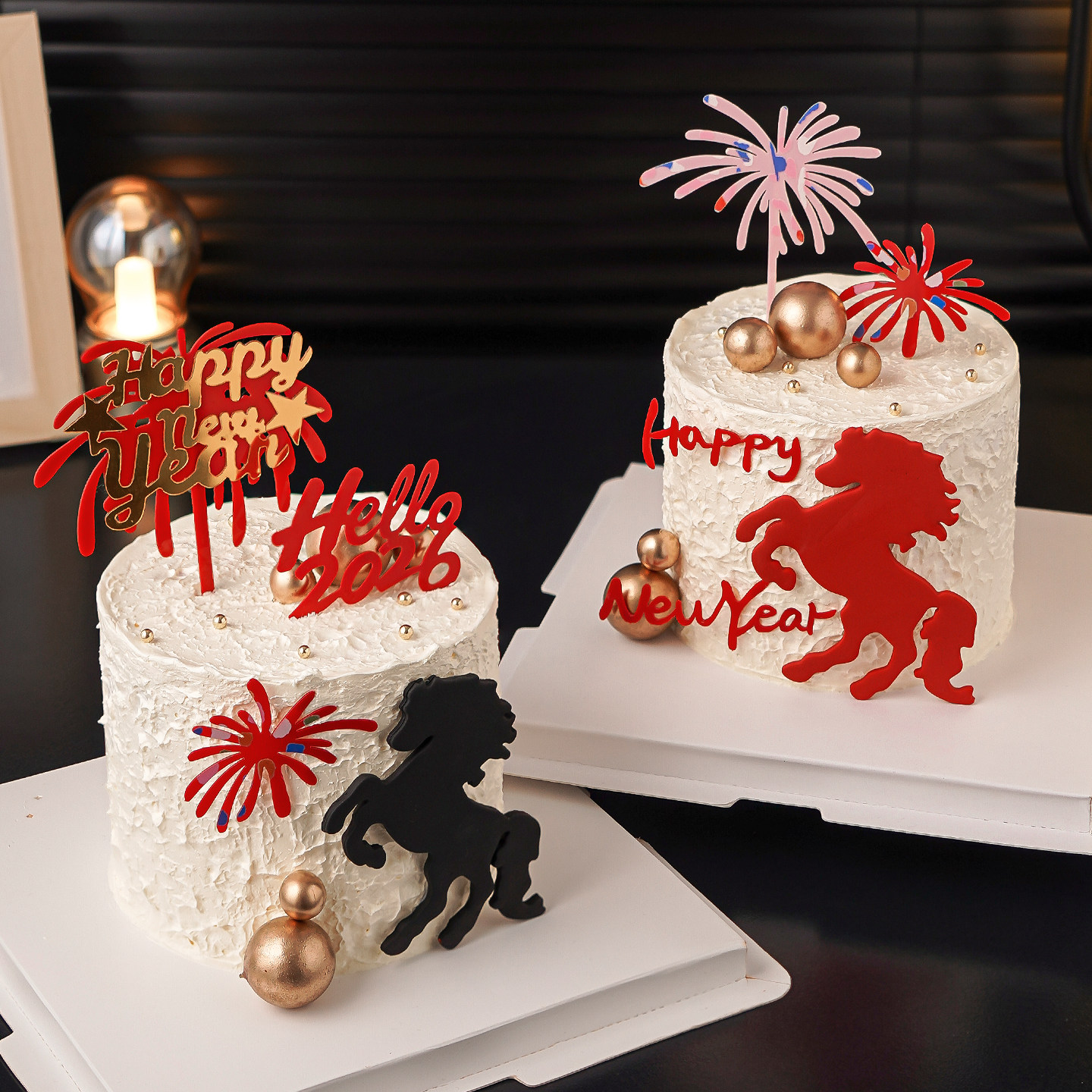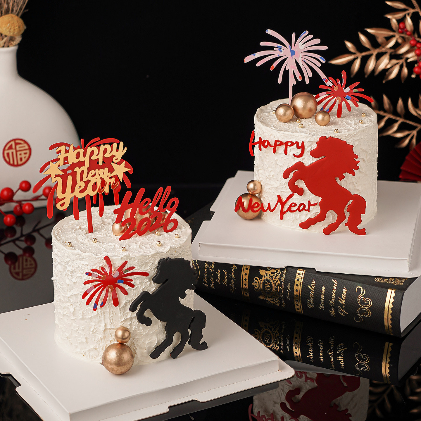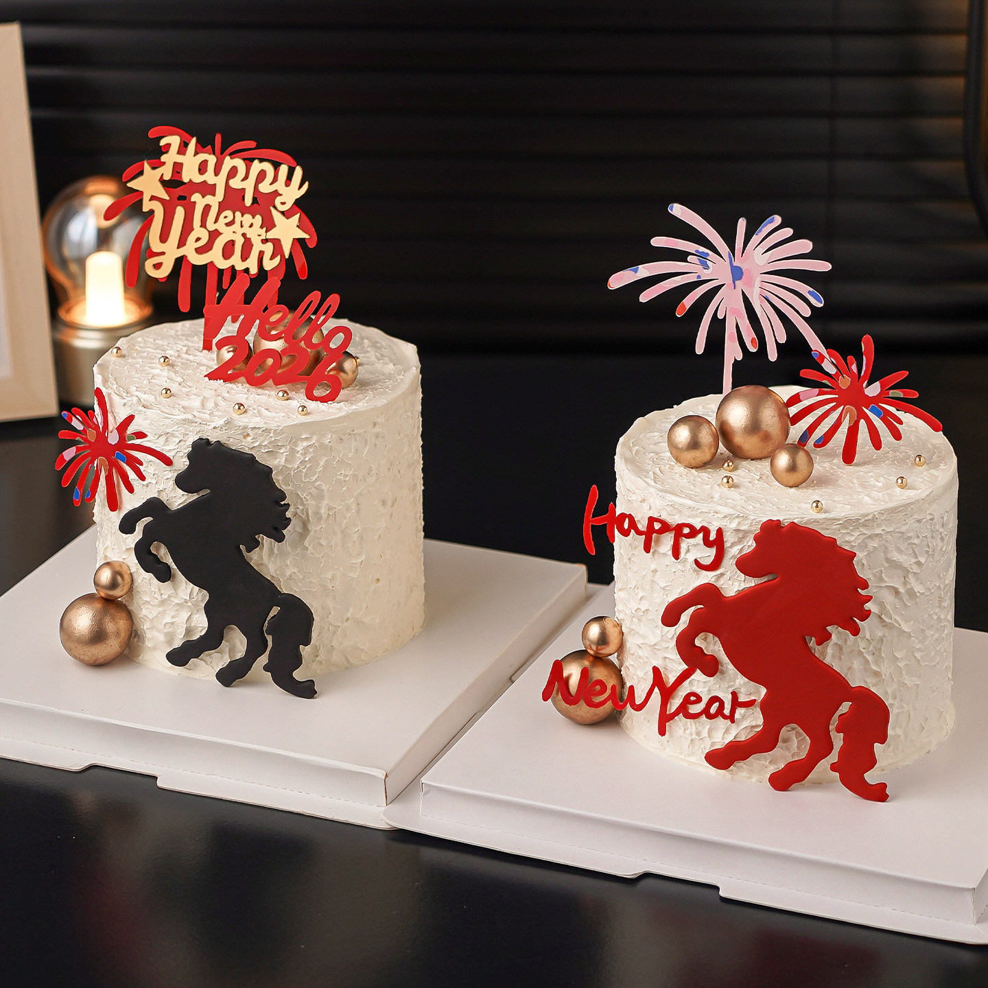 淘宝新年马到成功蛋糕装饰千里马翻糖切模Hello2026礼花亚克力插件