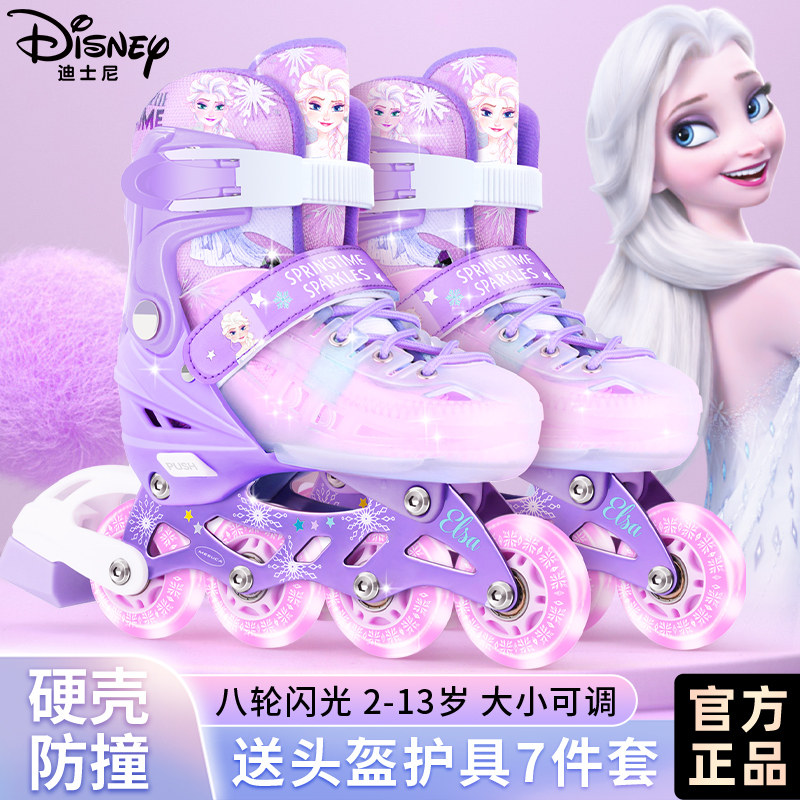 天猫迪士尼轮滑鞋儿童全套装初学者旱冰滑冰鞋女孩男孩正品溜冰鞋女童