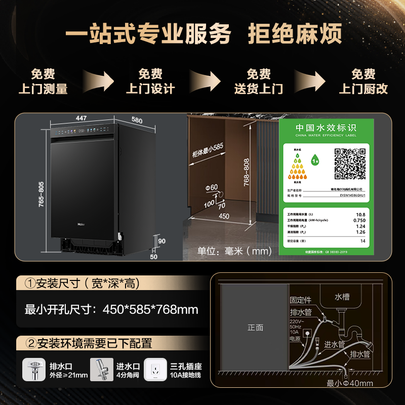 海尔超窄洗碗机 X11 双面洗14套 X11S 家用消毒全自动嵌入式变频