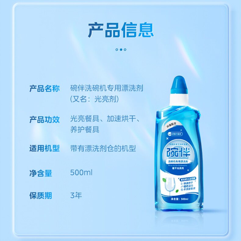碗伴漂洗剂由美的集团出品,专为各类洗碗机设计,适用于方太、西门子、华帝、东芝等多个主流品牌机型。作为一款高效辅助洗涤剂,碗伴漂洗剂能有效软化水质,防止水垢沉积,提升餐具光亮洁净度,避免水渍残留。其环保配方不含磷和有害化学物质,安全无残留,呵护家人健康。使用时只需倒入专用漂洗剂仓,即可在洗涤最后阶段自动释放,增强干燥效果,让碗碟更加晶莹透亮。碗伴漂洗剂与洗碗机主洗剂配合使用,能显著提升整体清洁效率,延长机器使用寿命,是现代厨房的理想清洁伴侣。