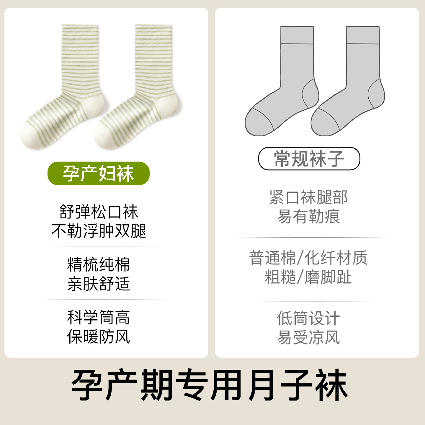 这款专为产后妈妈设计的夏季月子袜,采用优质纯棉面料,亲肤透气,柔软舒适,有效吸汗排湿,呵护敏感肌肤。中筒堆堆袜款式,宽松不勒腿,松口无骨设计,避免压迫脚踝,特别适合坐月子期间长时间穿着或睡觉时使用。弹性适中,贴合脚型又不紧绷,方便穿脱,兼顾美观与实用。无论是居家休养还是夜间安睡,都能为产妇提供贴心的足部保暖与舒适体验。简约素雅的设计,也适合日常搭配,是产后护理的贴心之选。