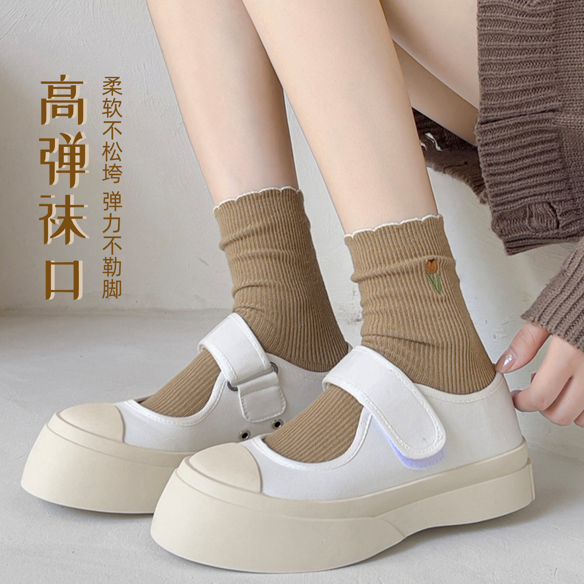 淘月子袜产后春秋中筒袜纯棉孕妇袜子松口袜不勒脚长筒胖脚女堆堆袜