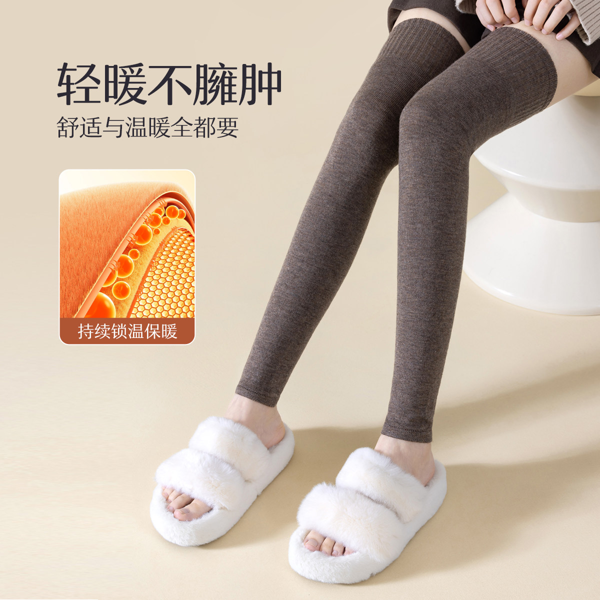 天猫羊毛护膝袜子女秋冬季加长防下滑毛圈加厚大腿袜孕妇膝盖腿套长筒