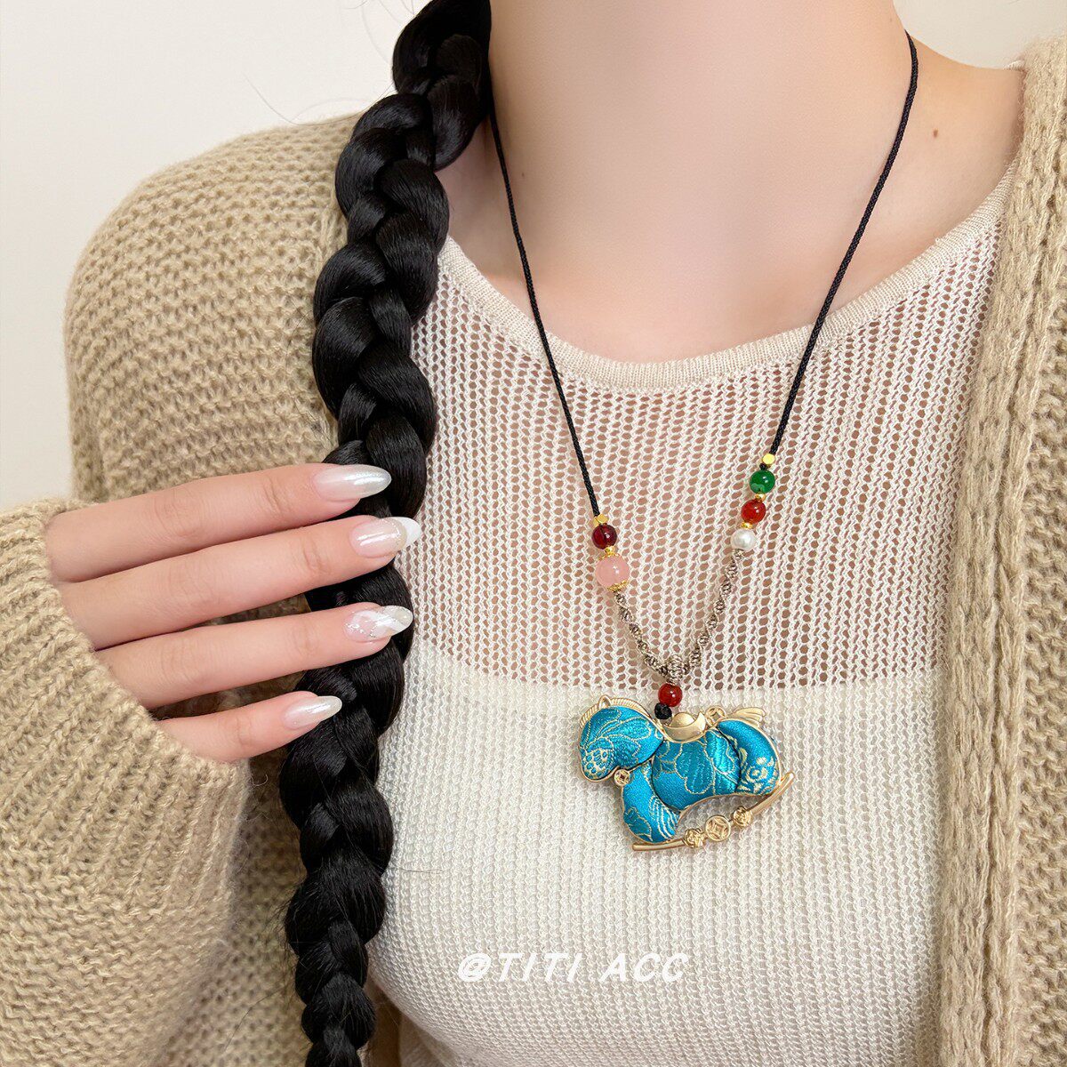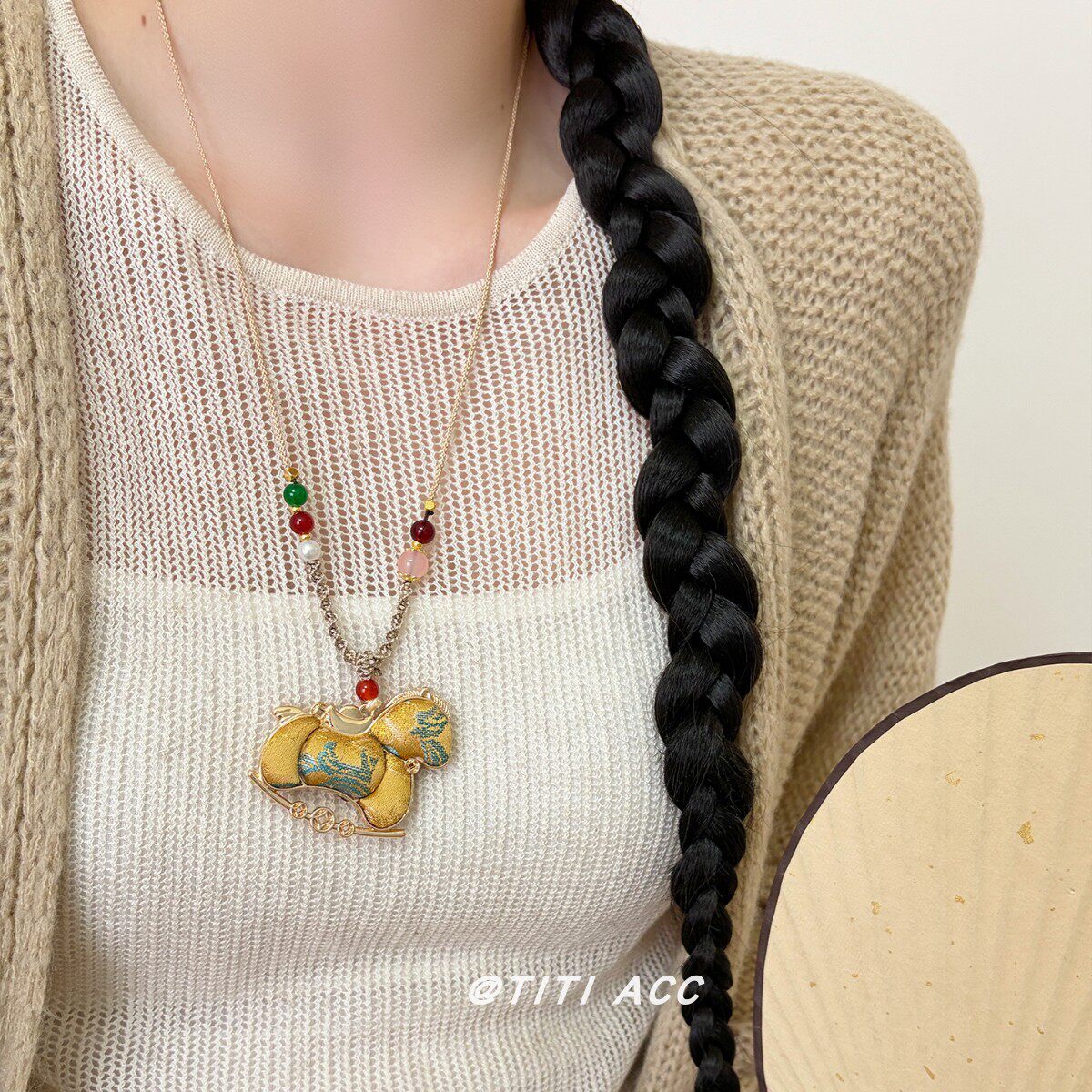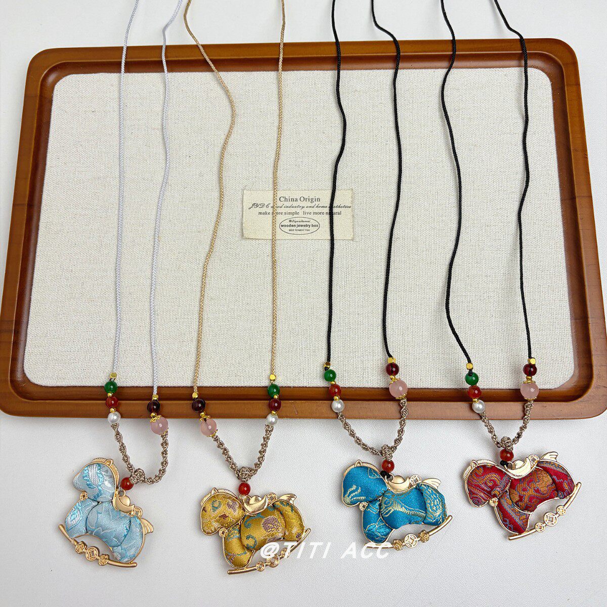 淘宝双面宋锦小马吊坠项链女新中式高级国风马年毛衣链本命年长款配饰