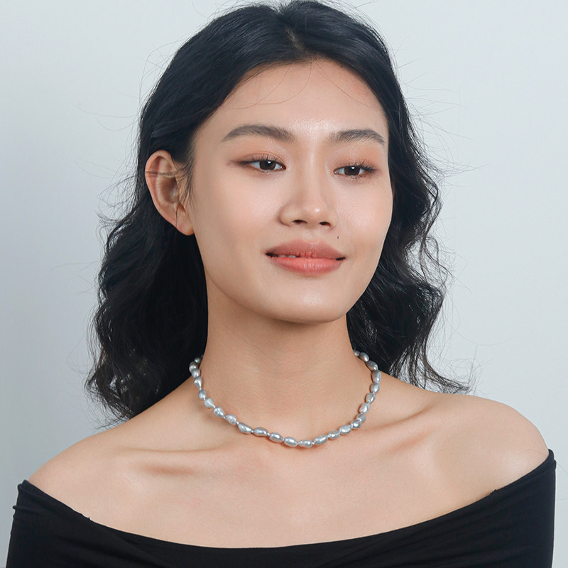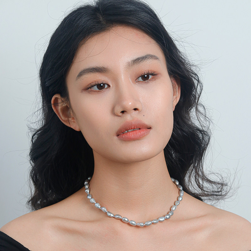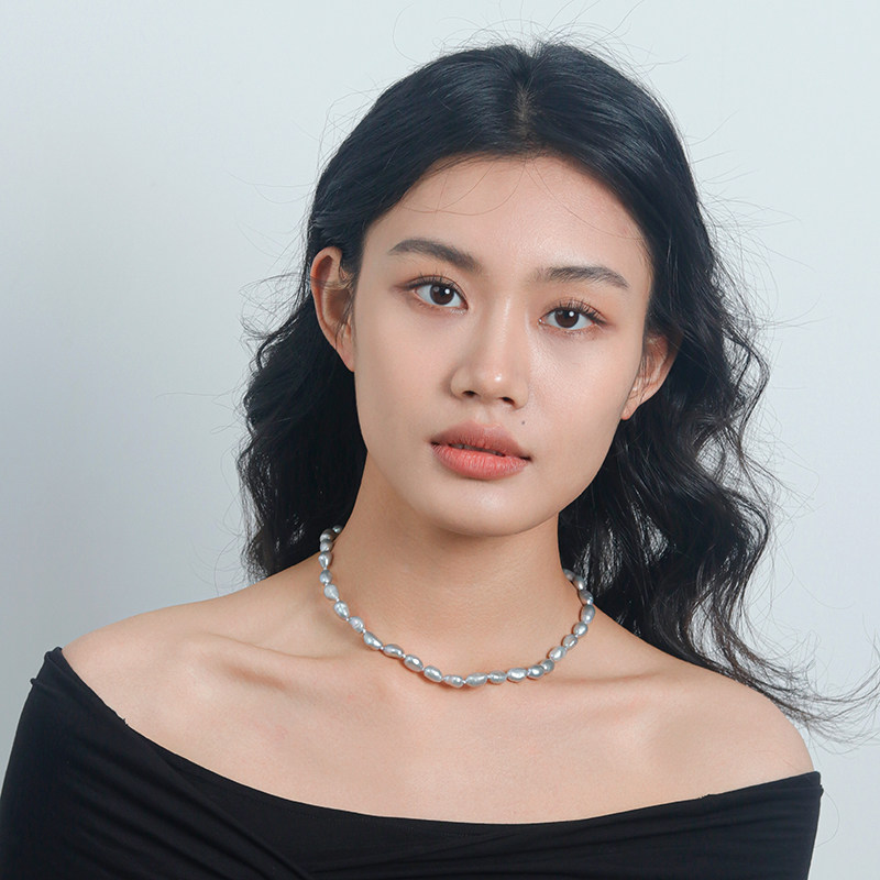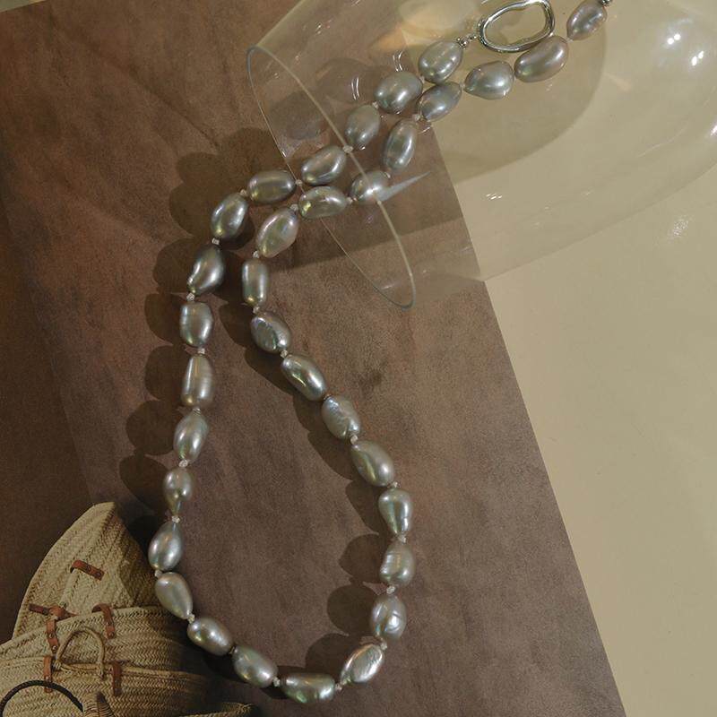 Moment 真多麻灰色天然巴洛克珍珠打结项链颈链毛衣链秋冬高级感