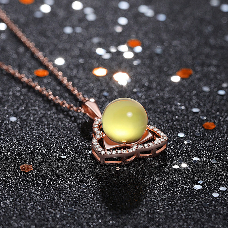 淘宝可塘珠首饰2021国潮新品镀18K玫瑰金二蓝珀琥珀蜜蜡挂坠项链