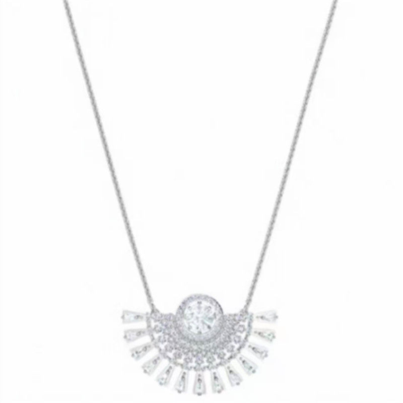 这款扇形女项链以“跳动的心”为设计灵感,采用三层吊坠结构,层次分明,灵动优雅。中央镶嵌闪耀晶彩水钻,随步伐轻盈摇曳,折射出迷人光芒,宛如心跳般跃动不息。搭配经典扇形轮廓,融合现代美学与复古韵味,展现女性柔美气质。耳环与锁骨链可自由调节长度,贴合不同穿搭需求,无论是日常通勤还是晚宴聚会,皆能点缀颈间风情。整体造型精致细腻,金属光泽与水钻交相辉映,彰显高级质感,是展现个性与品味的时尚之选,为整体造型增添一抹璀璨亮点。