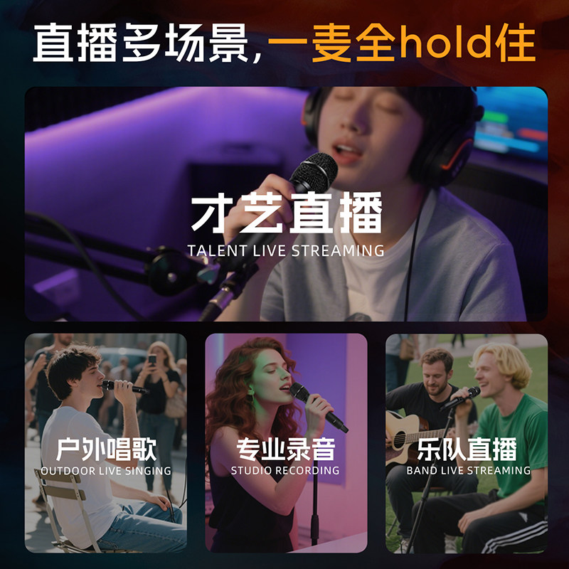 ICKB诺亚Noah无线麦克风是一款专为户外唱歌、手机直播及主播设计的便携式音频设备。它采用先进的无线传输技术,连接稳定、延迟低,支持蓝牙与2.4G双模连接,兼容手机、平板、电脑等多种设备。内置专业级声卡,提供清晰饱满的音质和丰富的音效调节功能,轻松实现混响、变声等效果。话筒轻巧耐用,续航持久,适合户外K歌、直播带货、短视频拍摄等场景。更可外接音响系统,大幅提升扩音效果,满足多人互动需求。无论是街头表演还是户外直播,ICKB诺亚Noah都能带来专业级音频体验,是移动娱乐和创作的高效利器。