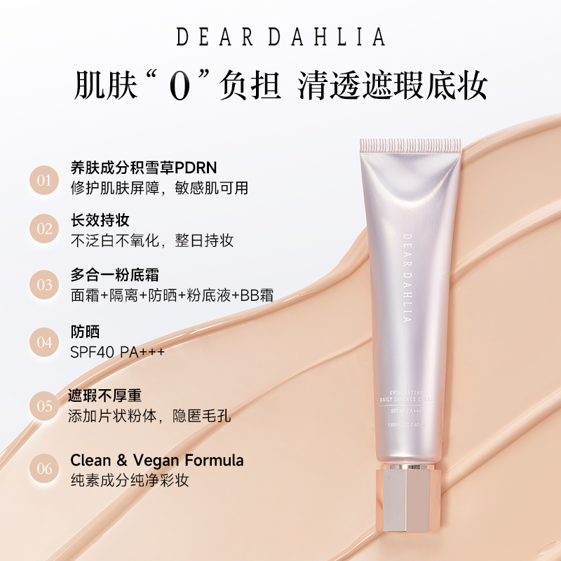 天猫DEAR DAHLIA粉底液BB霜小粉钻遮瑕持妆防晒养肤修护底妆隐匿毛孔