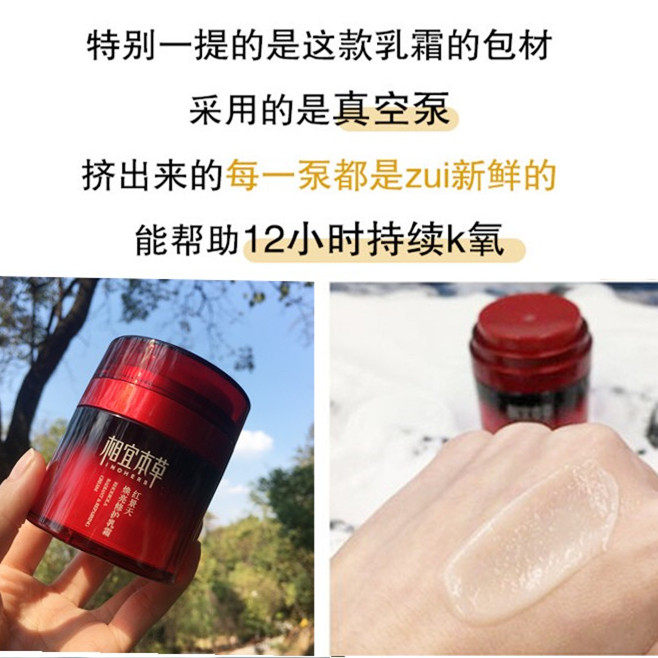 相宜本草红景天焕亮修护乳霜(大红瓶)是一款集抗皱、紧致、保湿与焕亮于一体的精华面霜。精选高原红景天精华,富含抗氧化成分,有效抵御自由基,延缓肌肤老化。质地丰润细腻,易吸收不粘腻,深层滋养干燥肌肤,提升肌肤弹性与紧致度。配合多种草本精粹,温和修护受损屏障,改善暗沉,令肌肤透亮有光泽。适合轻熟龄及成熟肌肤日常使用,早晚涂抹,持续使用可显著淡化细纹,重塑饱满轮廓,重现年轻光采。国货匠心之作,以自然之力守护美丽。