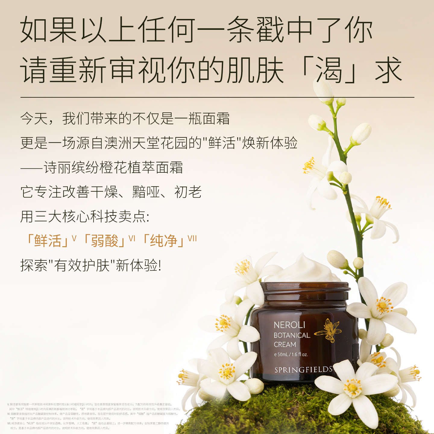 天猫诗丽缤纷Springfields橙花植萃面霜补水保湿润肤素颜晚霜紧致