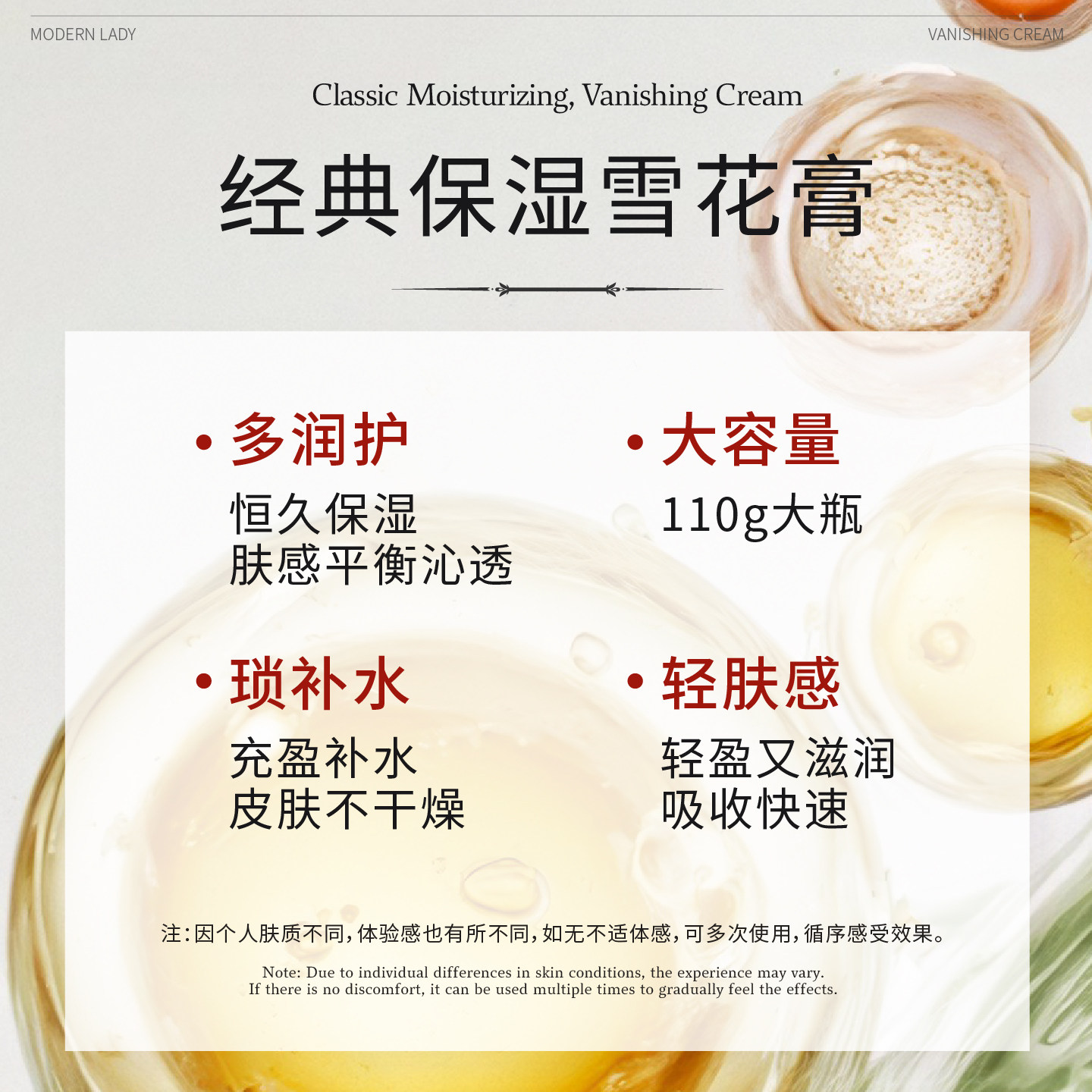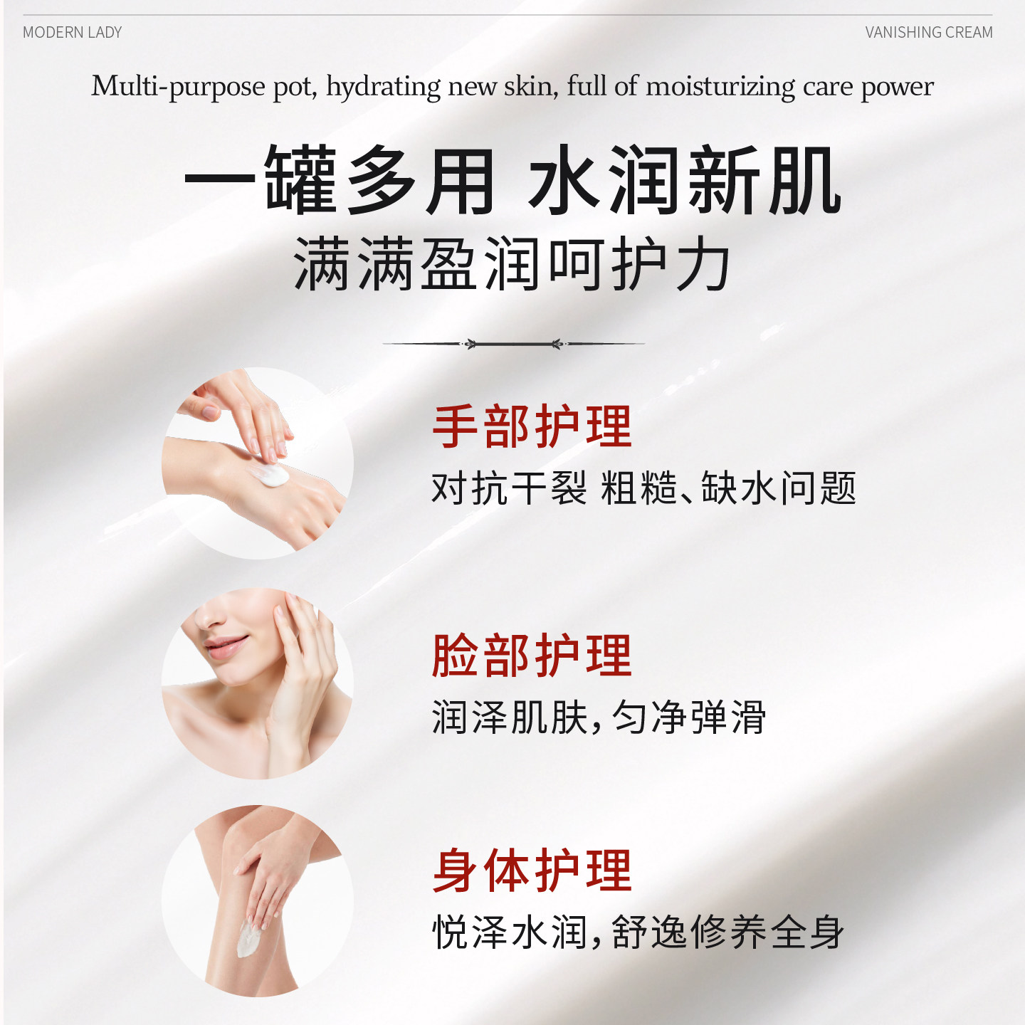 摩登红人正品老上海经典雪花膏,传承上世纪三十年代上海滩经典护肤配方,以天然植物精华为基底,融合现代护肤科技,打造110g精致装护手霜、保湿面霜与身体乳三合一经典产品。质地细腻柔滑,一抹即化,迅速渗透肌肤,深层滋润干燥部位,持久锁水保湿,令肌肤柔嫩光滑。淡雅清香,复古包装,尽显老上海的优雅风情。适用于面部、手部及全身肌肤,四季皆宜,尤其适合干燥季节使用。摩登红人坚持品质为本,正品保障,是追求经典与实用兼具的现代女性护肤优选,重现东方美肌的温润光彩。