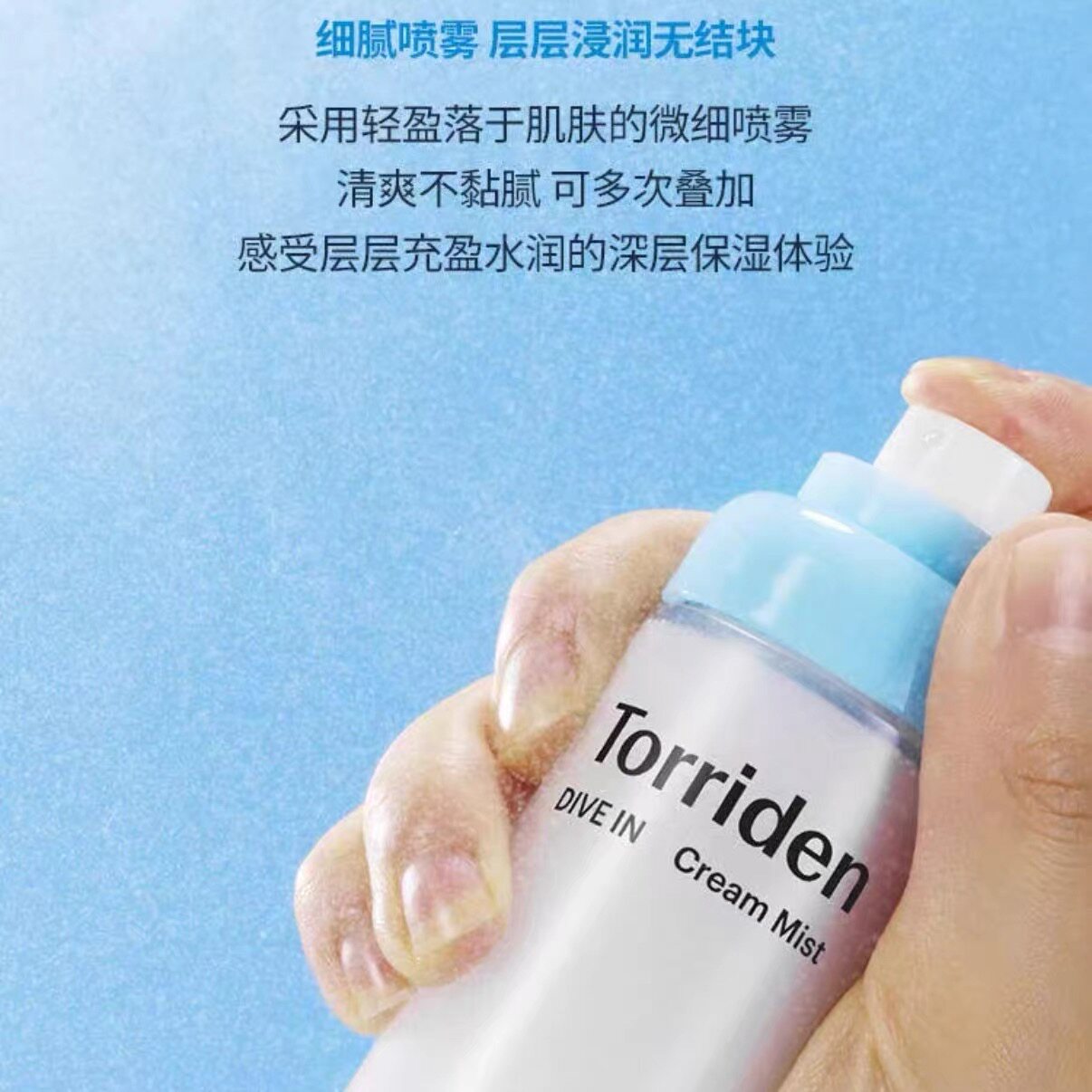 【新品现货】韩国Torriden桃瑞丹面霜喷雾,集妆前补水、保湿、精华、爽肤于一体,一瓶多效,轻松打造水润透亮肌。采用小分子透明质酸与舒缓植萃成分,深层渗透,快速补水锁水,提升肌肤含水量,令底妆更服帖持久。轻盈喷雾质地,细腻均匀,上脸即化水,清爽不粘腻,适合各种肤质日常使用。妆前喷一喷,增强肌肤屏障,减少卡粉浮粉;妆后亦可定妆补水,维持水润光泽。便携设计,随时随地为肌肤注入活力,是换季护肤与精致妆容的必备神器。韩国原装进口,品质保障,现货速发,开启水润新体验!