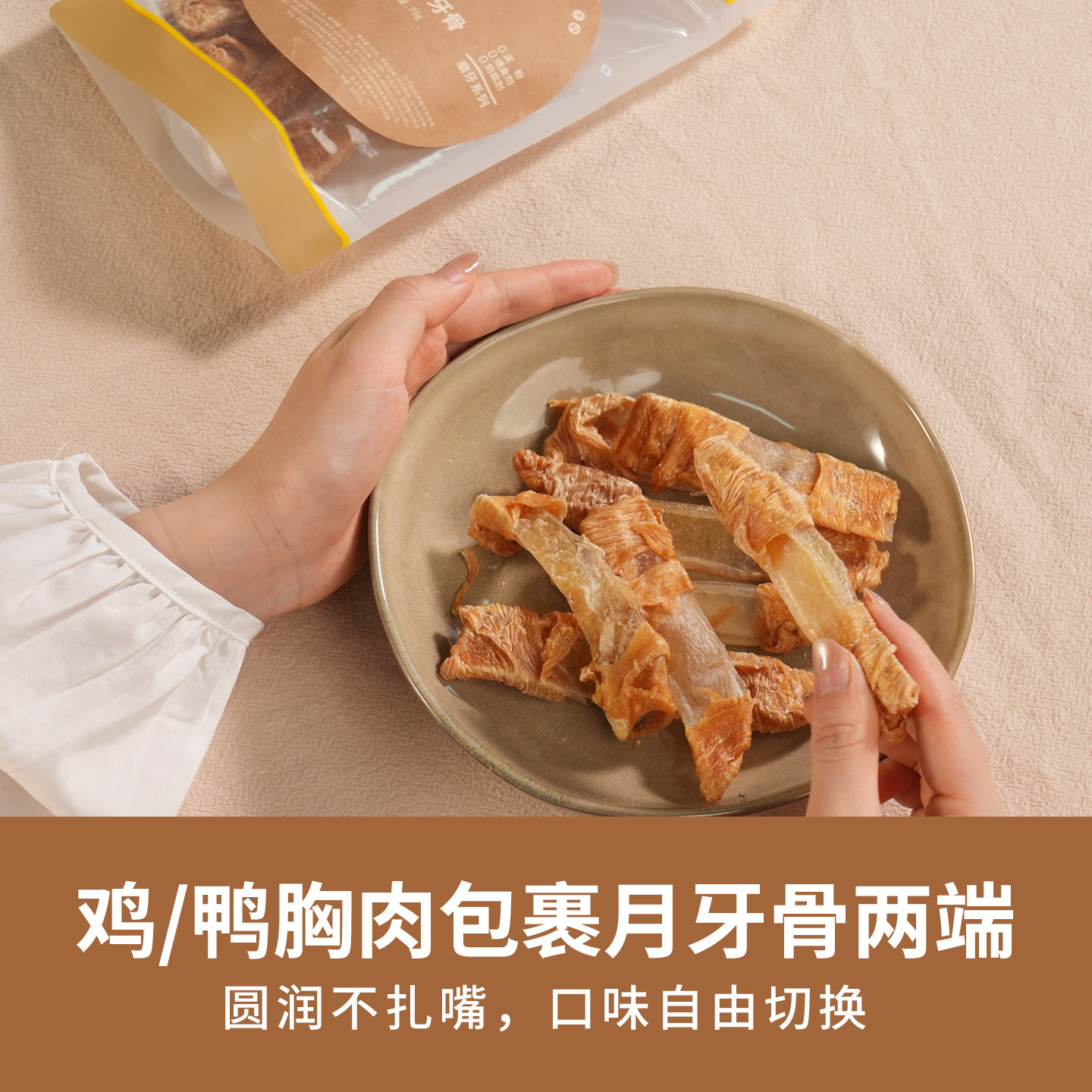 太阳家鸡鸭肉卷牛月牙骨狗狗磨牙棒,专为中大型犬设计的高品质宠物零食。精选优质鸡鸭肉与天然牛月牙骨,经低温慢烘工艺制成,保留肉香与营养,口感酥脆耐咬。产品富含蛋白质,有助于清洁牙齿、减少牙垢,满足狗狗咀嚼天性,同时缓解换牙期或焦虑情绪。无添加防腐剂、人工色素,安全健康。适合作为训练奖励或日常互动零食,增进人宠感情。结实耐咬的结构特别适合中大型犬,既锻炼咬合力,又避免误食风险。太阳家坚持天然健康理念,让爱犬吃得开心、主人放心。