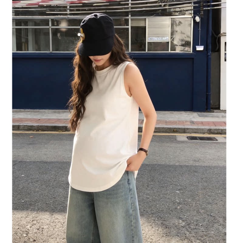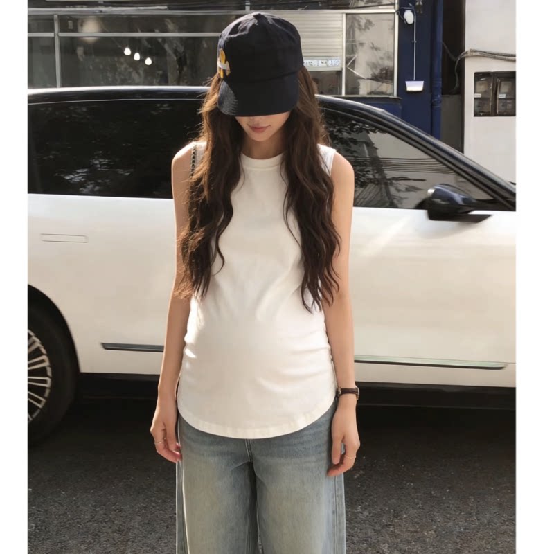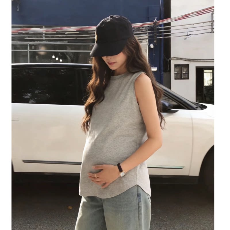 淘宝无袖上衣孕妇装ins风外穿夏季款时尚纯棉圆领背心侧开叉宽松遮肚