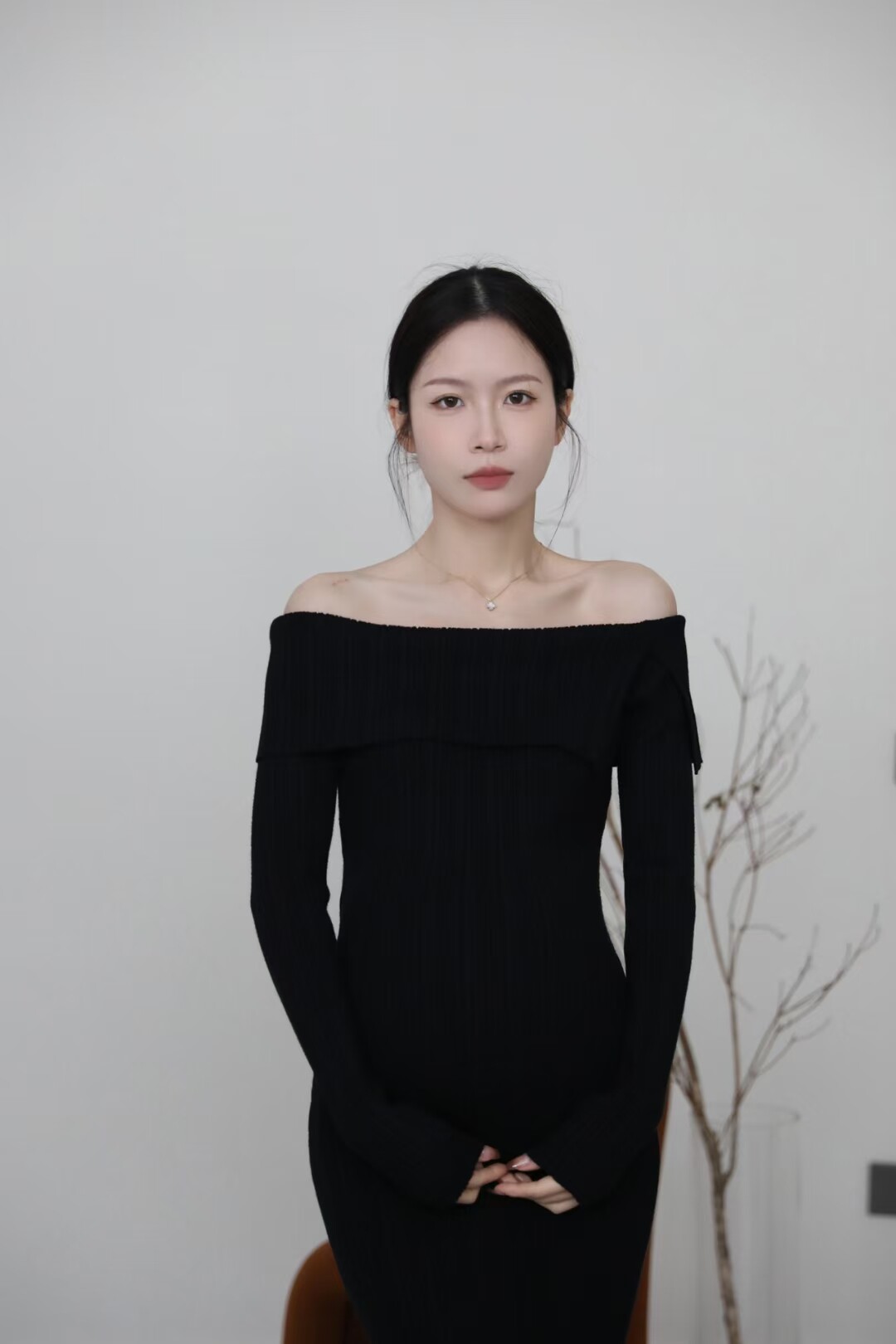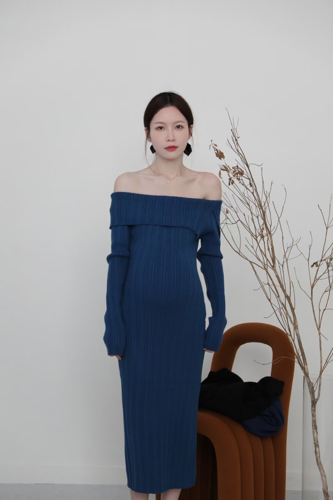 淘宝孕妇装秋冬季显瘦开叉长裙性感气质圣诞连衣裙一字肩修身内搭长裙