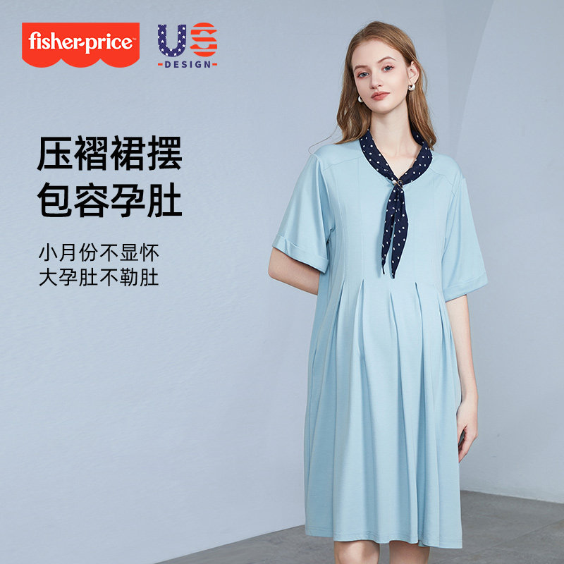 天猫费雪孕妇连衣裙夏装2026新款时尚夏季宽松大码中长款孕妇装裙子女