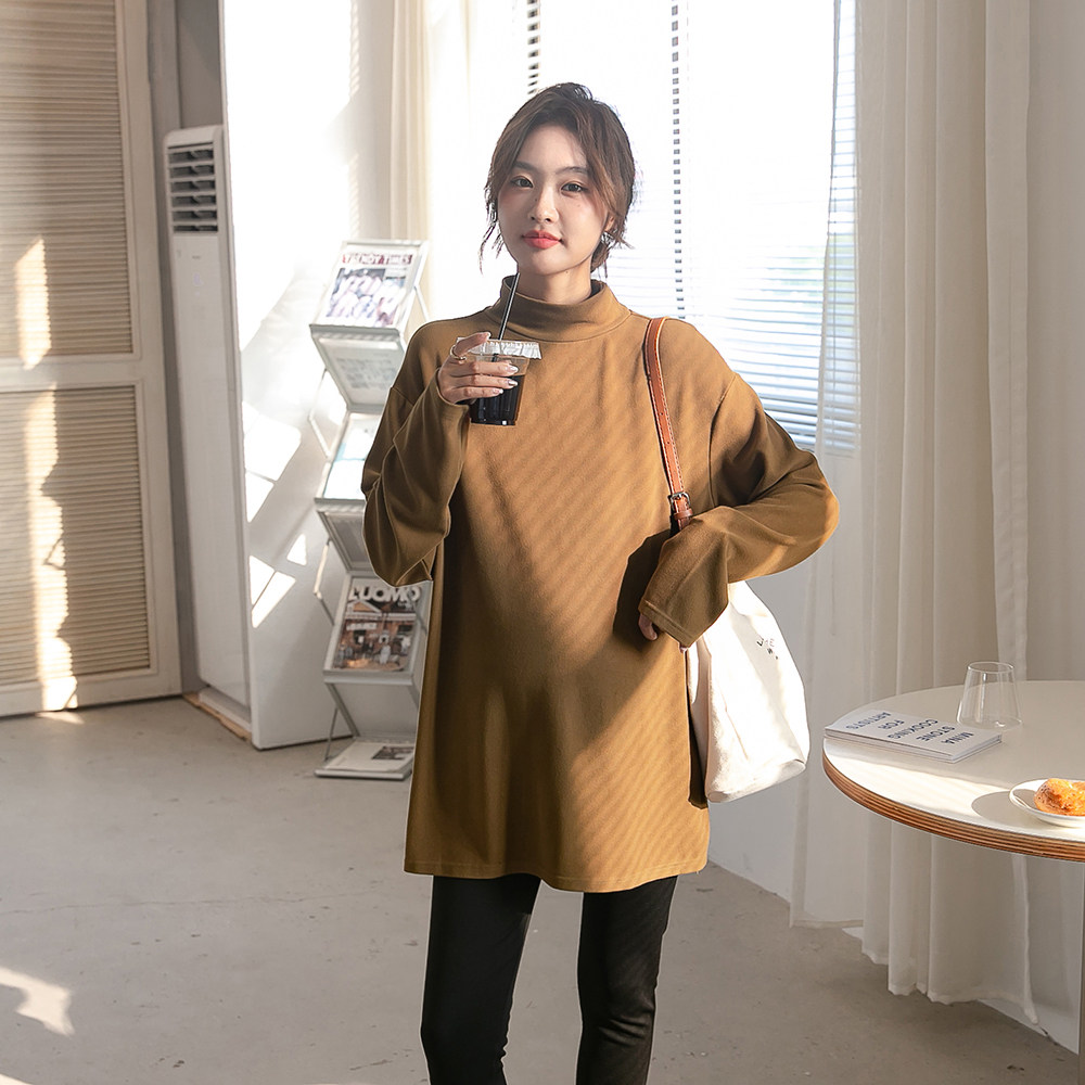 这款磨毛孕妇装纯色打底衫,专为孕期女性贴心设计,采用柔软亲肤的磨毛面料,触感细腻,保暖透气,适合春秋冬三季穿着。高领设计有效防风护颈,长袖剪裁贴合身形,不紧绷不束缚,给予孕妈妈舒适自在的穿着体验。简约纯色风格百搭易配,无论是外穿还是作为内搭,都能轻松驾驭各种孕妇装造型。弹性适中,预留腹部空间,随孕期变化依然合身。精细做工,耐洗耐穿,是孕期衣橱的必备单品,兼顾舒适、实用与时尚,让准妈妈在特殊时期也能优雅自信。
