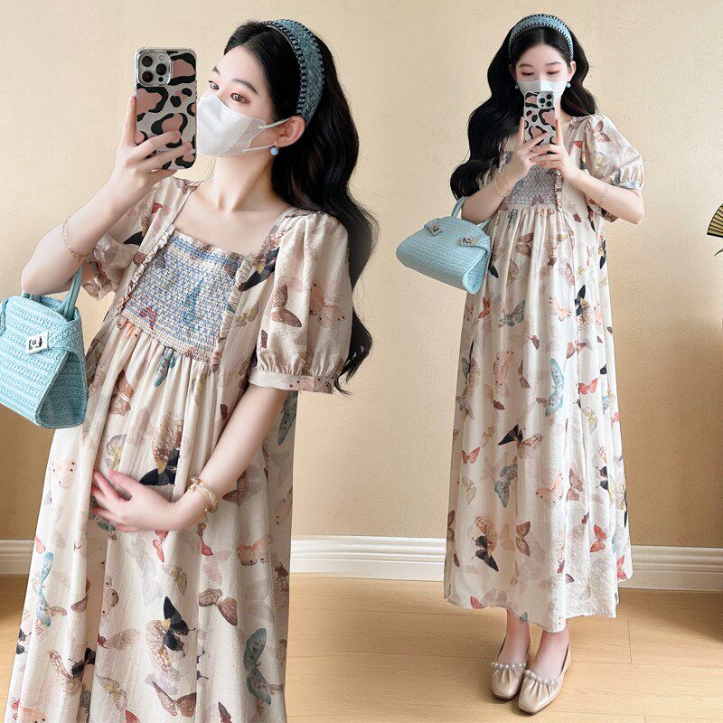 淘宝孕妇装2025夏季新款雪纺甜美泡泡袖连衣裙宽松大码显瘦碎花长裙子