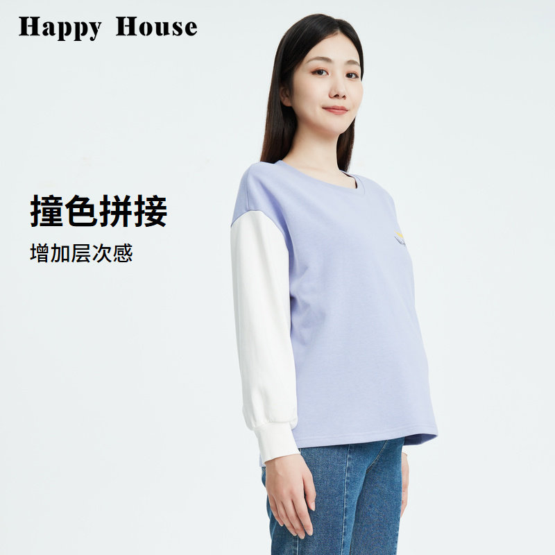 天猫快乐屋孕妇撞色拼接休闲卫衣2026新款秋装时尚款小个子春秋季上衣