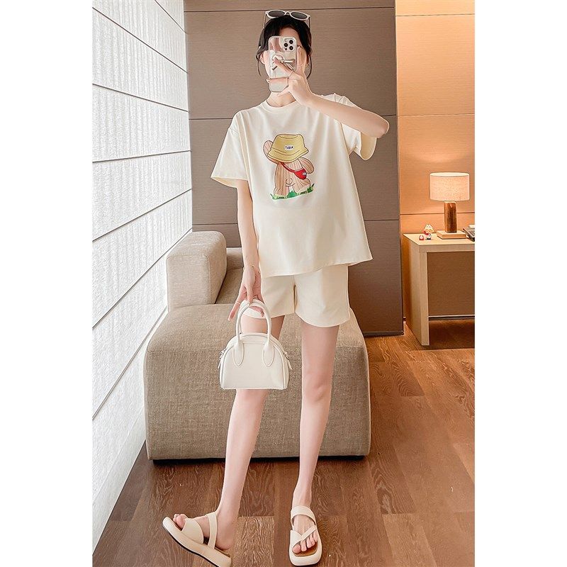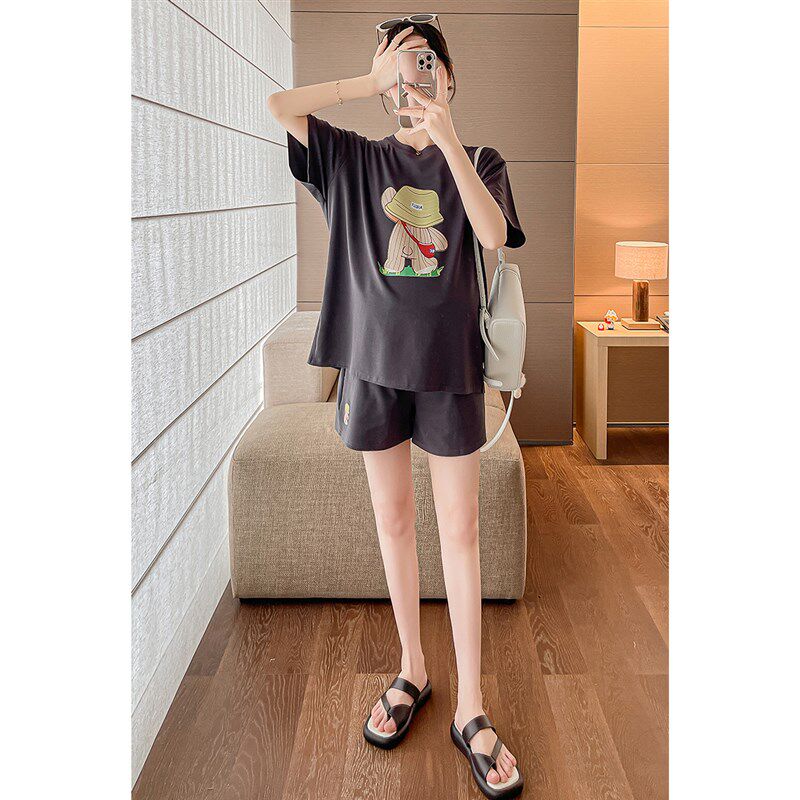 淘宝孕妇套装夏2024n新款宽松休闲时尚显瘦印花薄款短袖上衣短裤两件