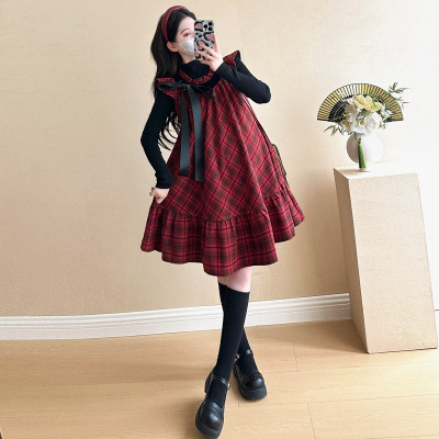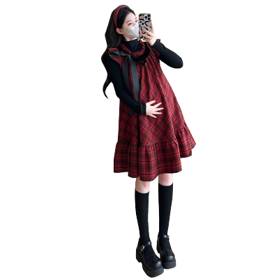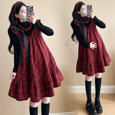 淘宝设计感秋装孕妇装2025套装新款长袖百搭上衣宽松格纹连衣裙两件套