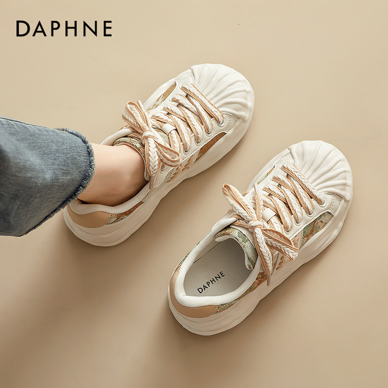 达芙妮2026新款女款贝壳头小白鞋,融合经典复古与时尚潮流,打造夏日百搭单品。鞋面采用优质环保材质,轻盈透气,搭配标志性贝壳头设计,简约中彰显个性。厚底设计巧妙增高,拉长腿部线条,兼顾舒适与美感。橡胶大底防滑耐磨,适合日常通勤、休闲出行等多种场景。纯白主色调清新雅致,易于搭配裙装或裤装,轻松驾驭各种风格。作为2026年夏季爆款,这款运动休闲板鞋不仅舒适耐穿,更成为时尚女性的必备鞋履,演绎青春活力与都市风尚的完美结合。