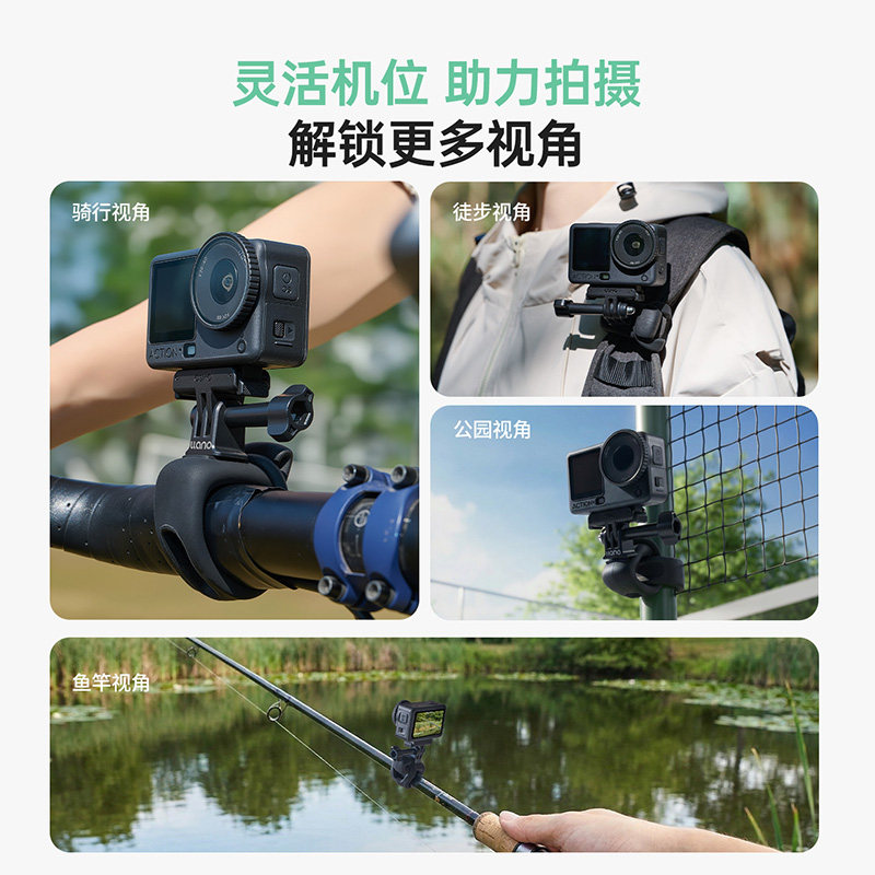 天猫绿巨能增稳弹力小q适用大疆action6/5pro/4/3运动相机骑行支架acepro2自行车支架gopro柔性支架多功能配件