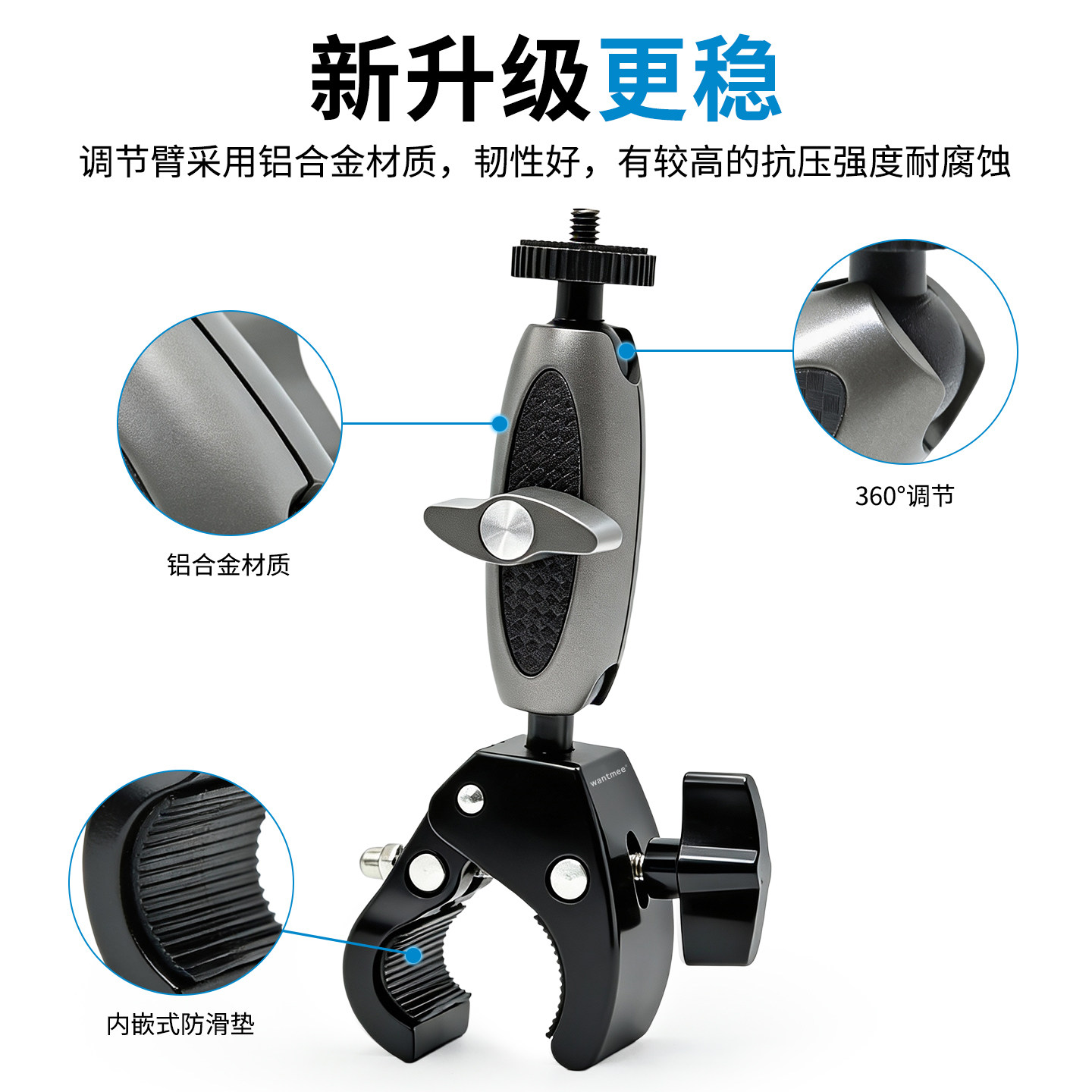 天Ulanzi优篮子 R105运动相机大力夹适用大疆Action5pro/Pocket3/Gopro配件摩托车自行车骑行支架固定夹监视器