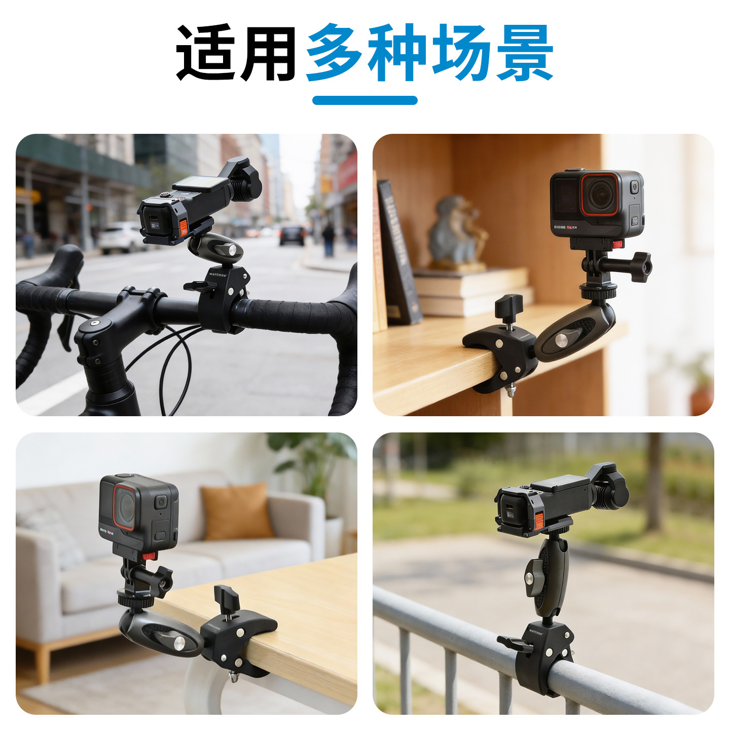 Insta360 X5、GoPro、大疆Action 5 Pro等运动相机骑行拍摄必备配件,专为自行车、摩托车等骑行场景设计。采用高强度合金与防滑硅胶材质,稳固耐用,有效减震防抖。车把固定支架兼容多种直径车把,安装便捷,360°可调角度,满足全景、第一人称等多种拍摄需求。搭配Insta360 ACE Pocket 3专用夹具,轻松实现低角度跟拍或车前广角记录。适用于城市通勤、山地越野、摩旅探险等场景,助你捕捉流畅高清的动态影像。无论是记录风景还是分享骑行乐趣,这套配件都能提升拍摄稳定性与创作自由度,是运动影像爱好者的理想选择。