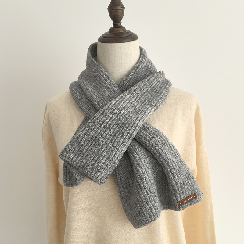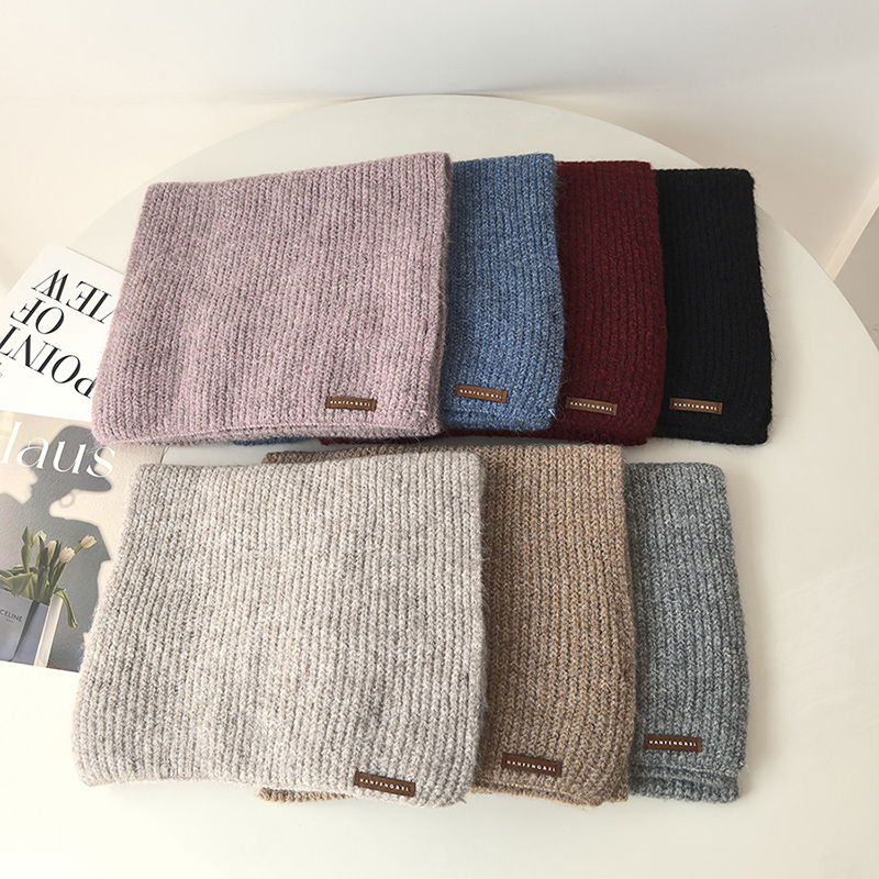 秋冬季新款韩版简约贴布字母针织围巾女含羊毛防寒保暖围脖氛围感