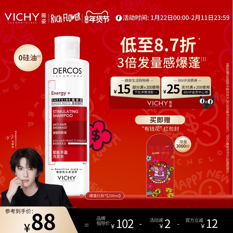 薇姿爆蓬红标洗发水,专为追求清爽蓬松与强韧发质的男女士设计。蕴含天然咖啡因与生姜精华,有效激发头皮活力,促进血液循环,帮助减少脱发困扰,增强发丝韧性。其轻盈配方深入清洁头皮油脂,带来持久清爽感,令发根立体蓬松,告别扁塌。适合油性、细软发质日常使用,洗后发丝顺滑不干燥,散发自然清香。作为薇姿官方正品,品质有保障,温和不刺激,男女皆宜。坚持使用,可显著改善头皮环境,打造健康强韧、蓬松有型的秀发,是追求清爽护发体验的理想之选。