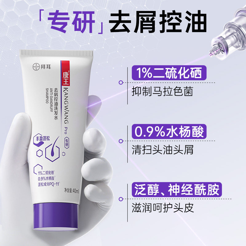 天猫康王二硫化硒洗发水去屑止痒小样装控油洗发露丰盈蓬松洗发液40ml