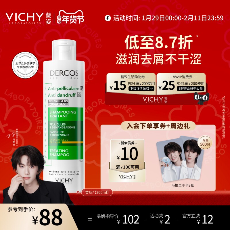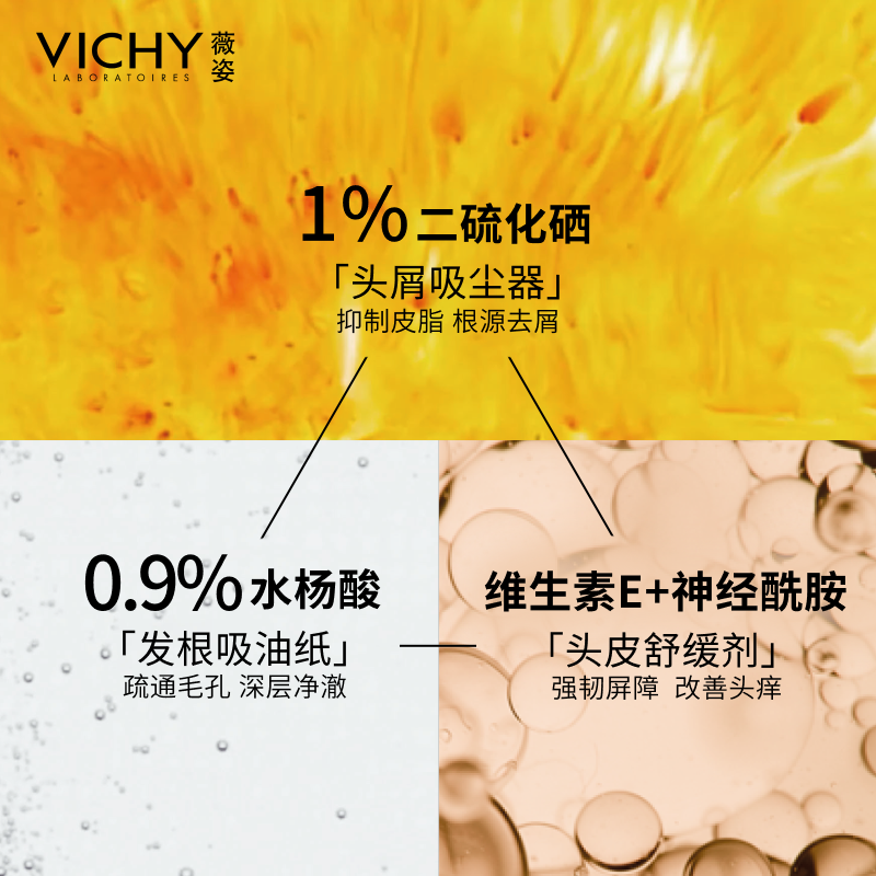 天猫薇姿黄标洗发水去屑水润二硫化硒干性头皮护理洗发露官方品牌正品