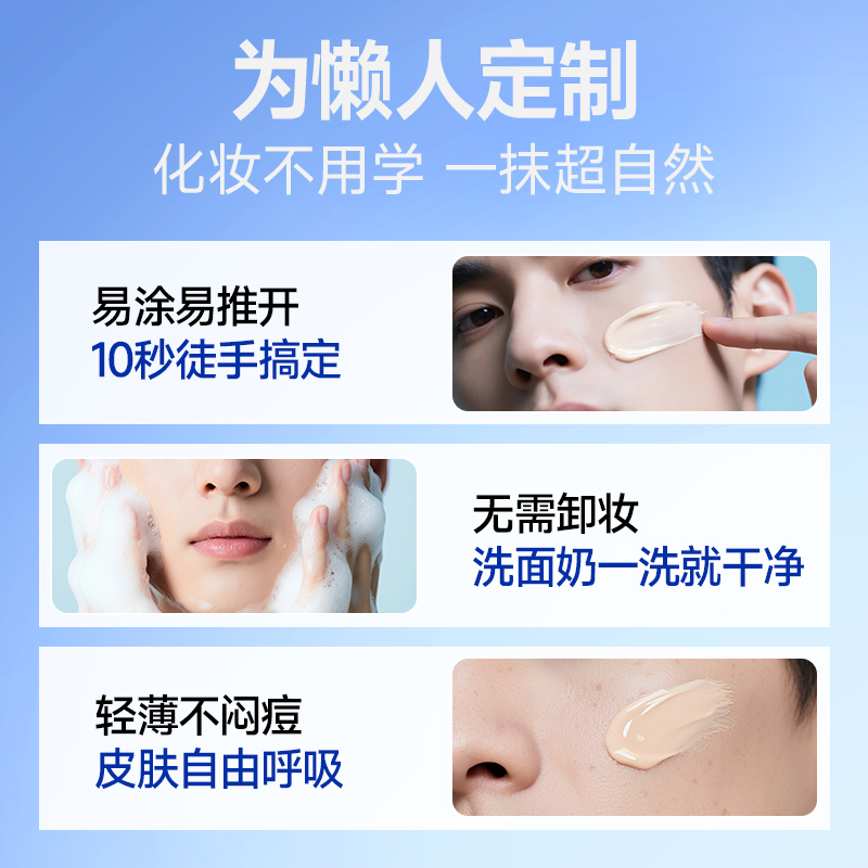 天猫尊蓝男士素颜霜bb霜粉底液遮瑕膏男生专用自然色小麦色化妆品全套
