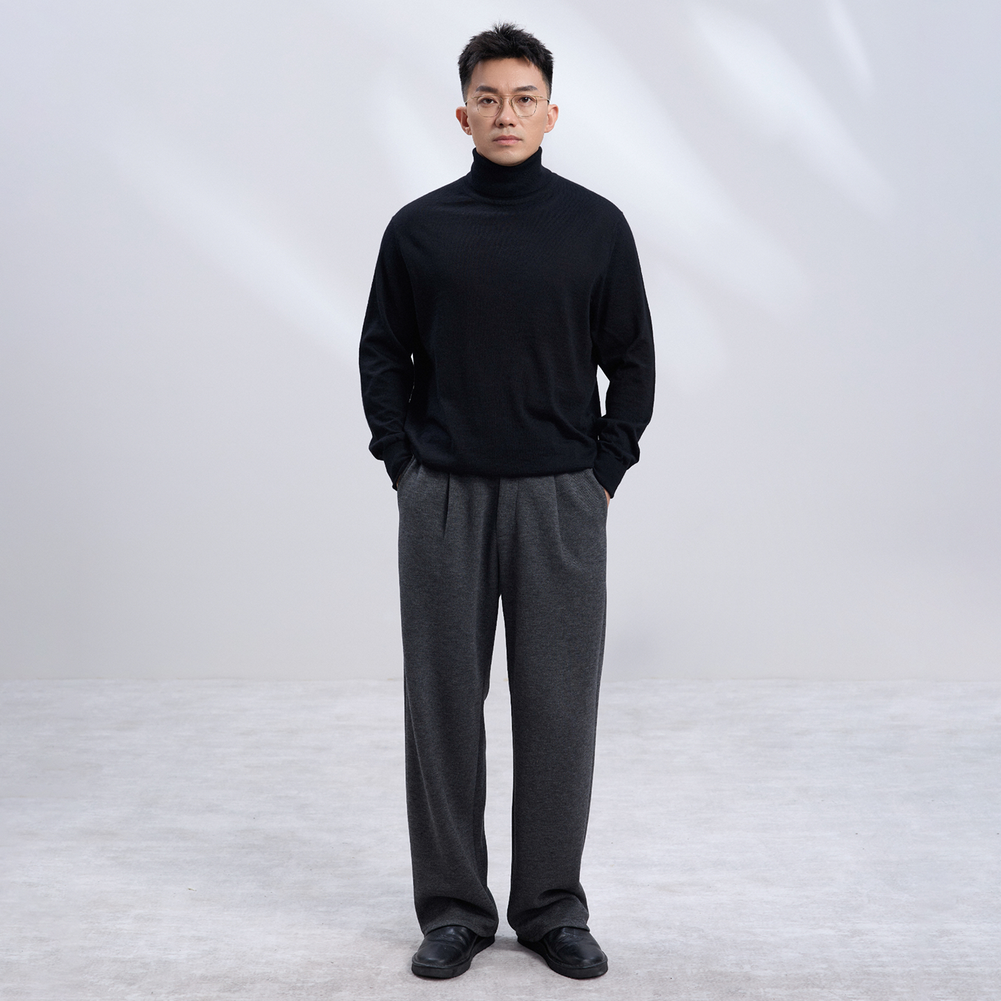 淘秋冬新款100%纯山羊绒衫男士半高领宽松针织衫毛衣男款保暖打底衫