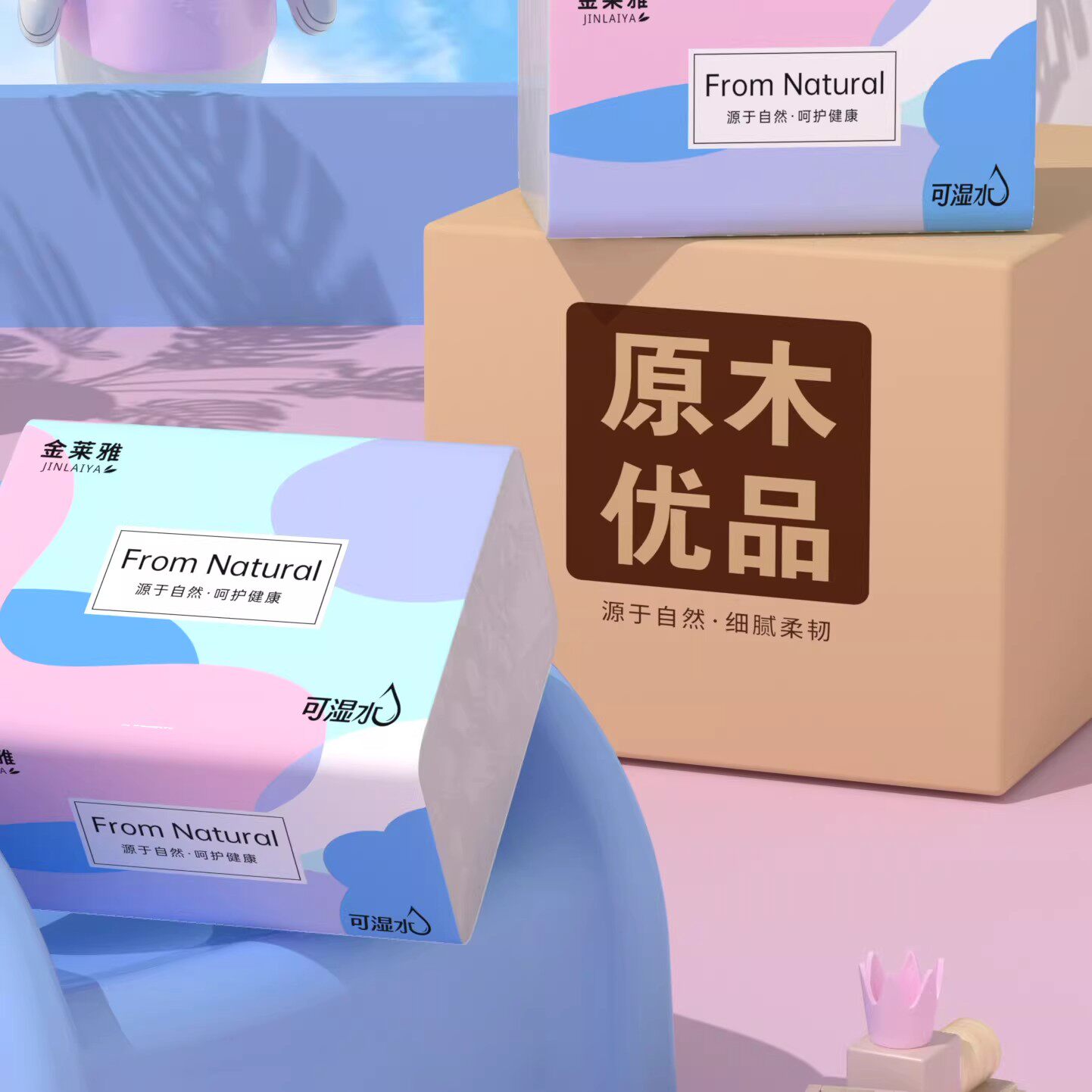淘宝金莱雅原生木浆抽纸家用可湿水2-3层加量实惠装面巾纸餐巾纸巾