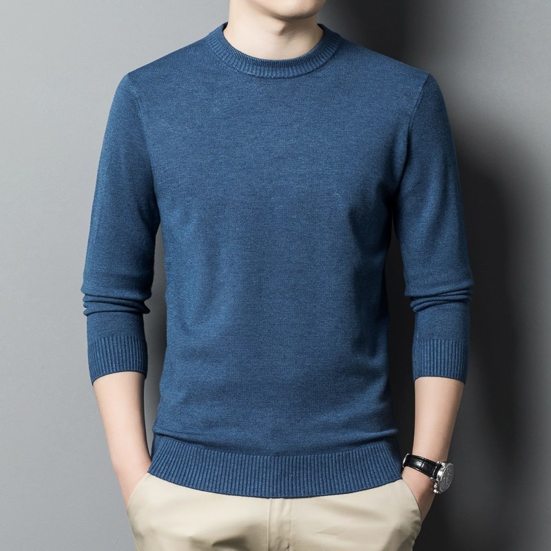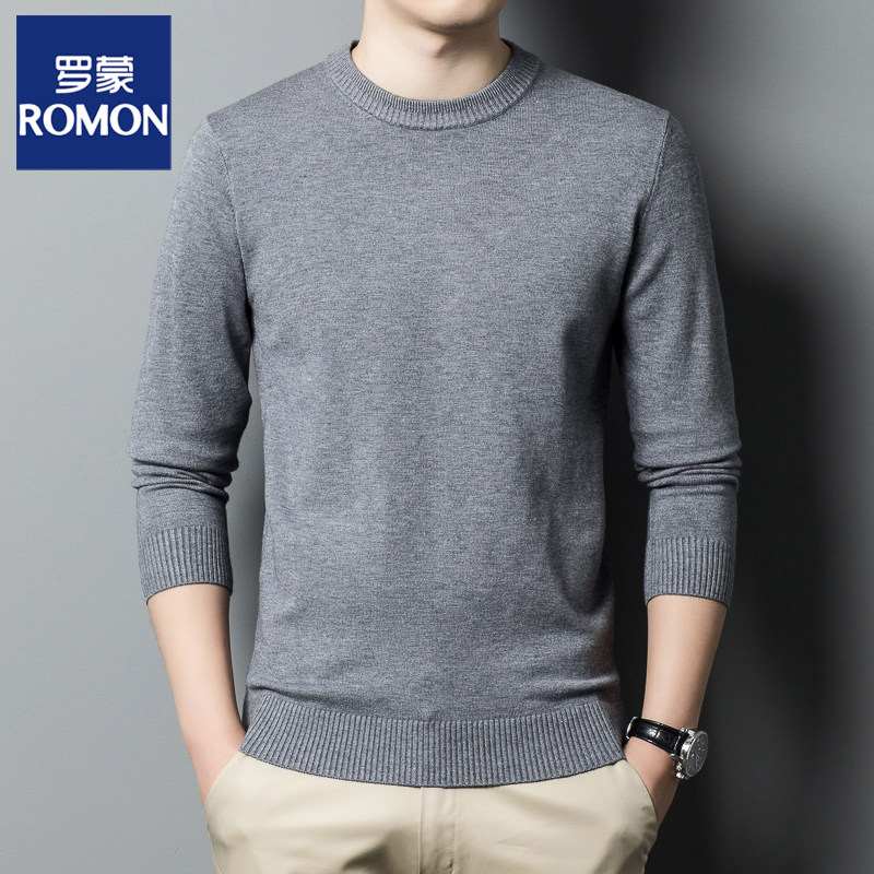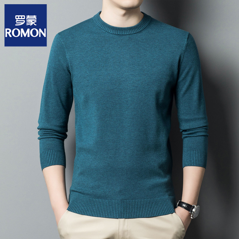 淘宝罗蒙秋冬新款圆领加厚半高领毛衣男中青年休闲男装纯色百搭打底衫